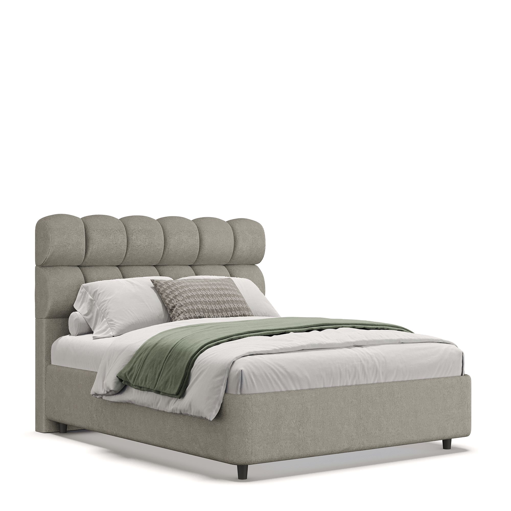 Благодаря мягкому наполнителю изголовья любители чтения перед сном и сериалов могут расположиться с комфортом. Пышная отделка в виде выпуклых роликов делает изголовье невероятно мягким и комфортным. Обивка кровати специально разработана по заказу бренда «Дятьково Design».