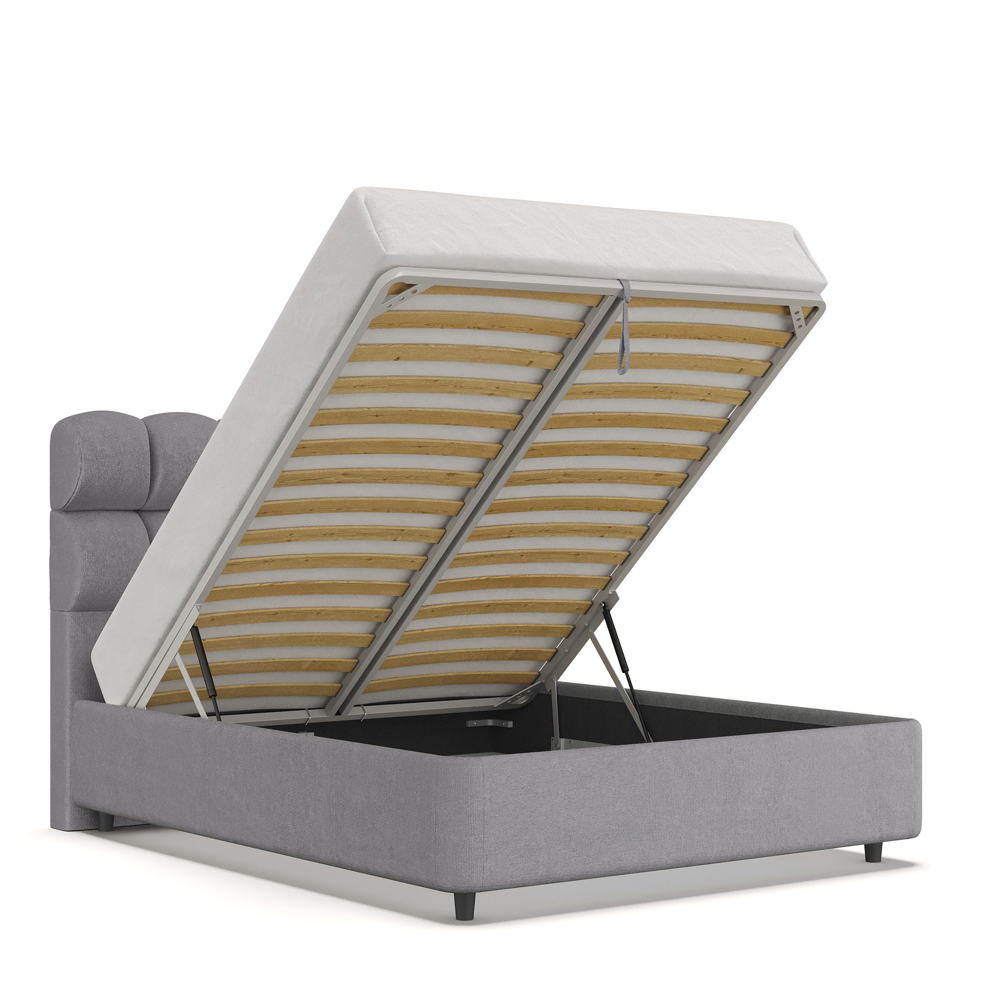 Механизм на газовых лифтах надежен и безопасен. Он плавно и бесшумно поднимает матрас, позволяя открывать ящик без особых усилий. Нагрузка на подъемный механизм – до 120 кг. Можно использовать матрас высотой до 32 см.