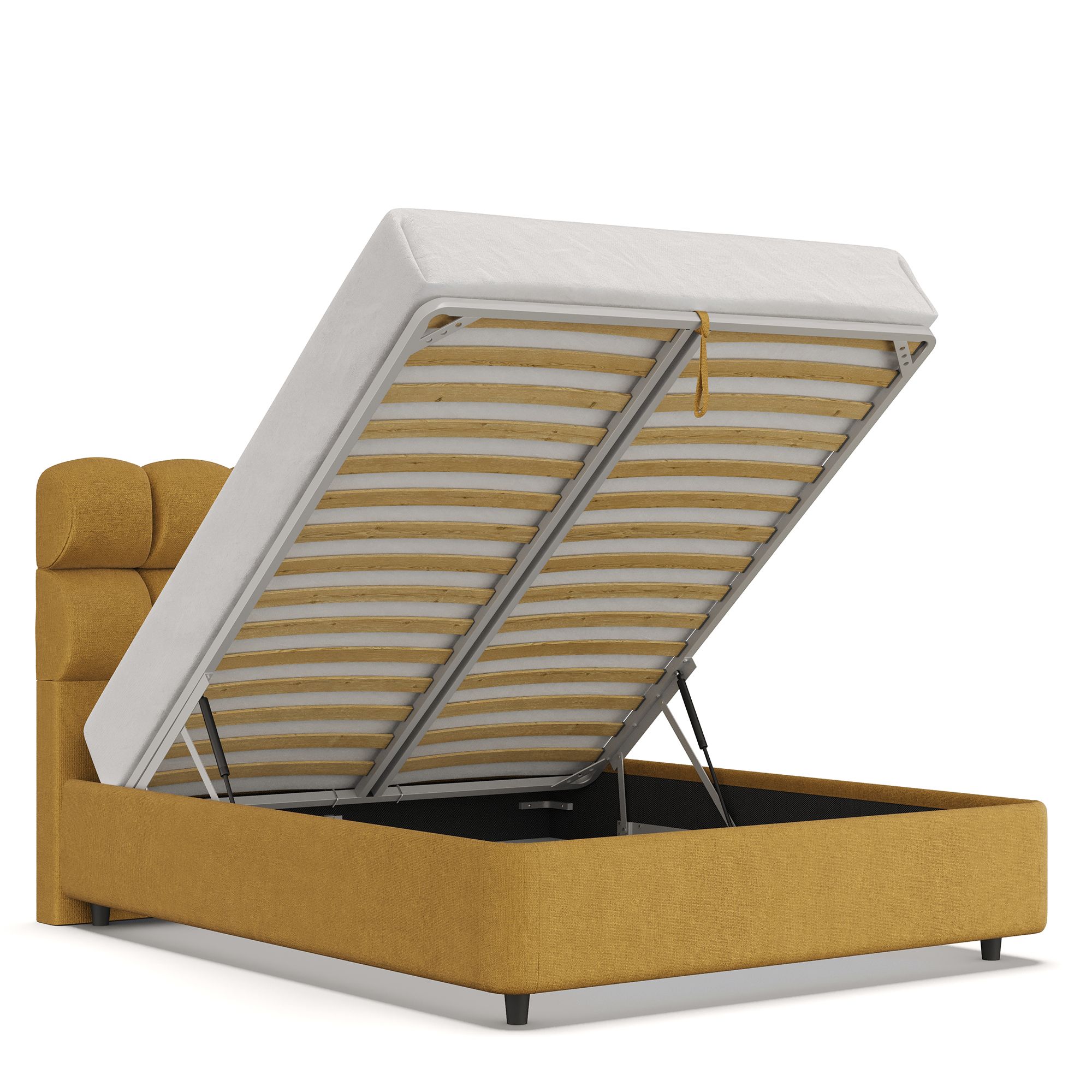Вместительный короб внутри кровати подойдет для хранения подушек, белья и других вещей. В бельевом ящике нет перегородок – это позволяет использовать его, в том числе, для хранения длинных и крупногабаритных вещей.