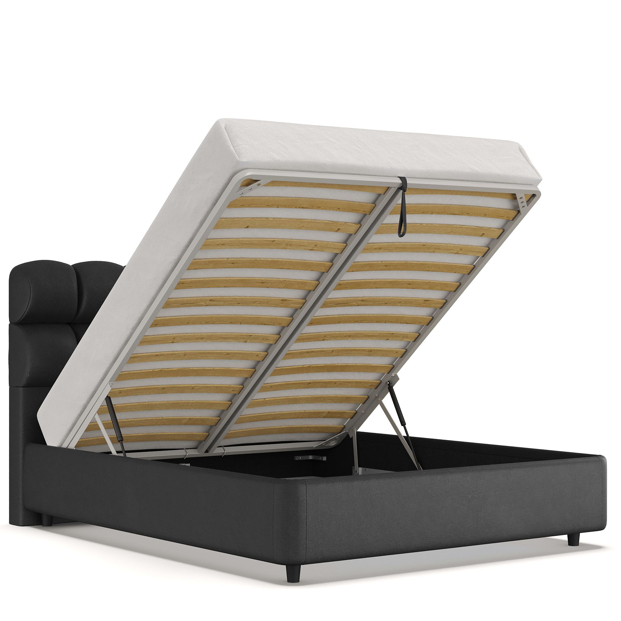 Вместительный короб внутри кровати подойдет для хранения подушек, белья и других вещей. В бельевом ящике нет перегородок – это позволяет использовать его, в том числе, для хранения длинных и крупногабаритных вещей.