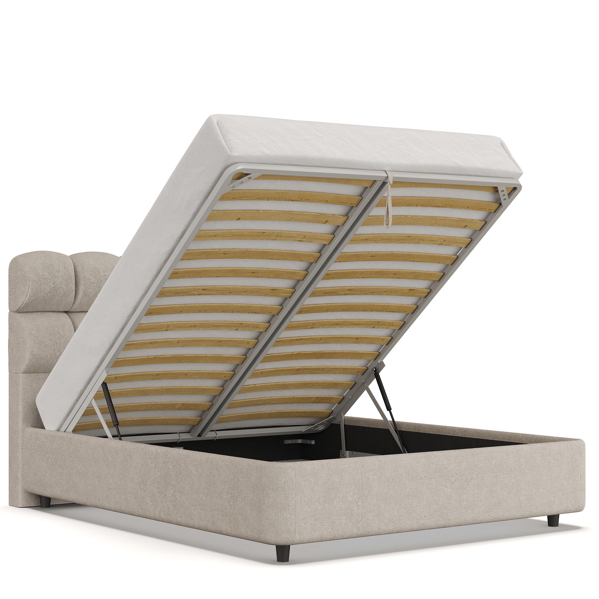 Механизм на газовых лифтах надежен и безопасен. Он плавно и бесшумно поднимает матрас, позволяя открывать ящик без особых усилий. Нагрузка на подъемный механизм – до 120 кг. Можно использовать матрас высотой до 32 см.