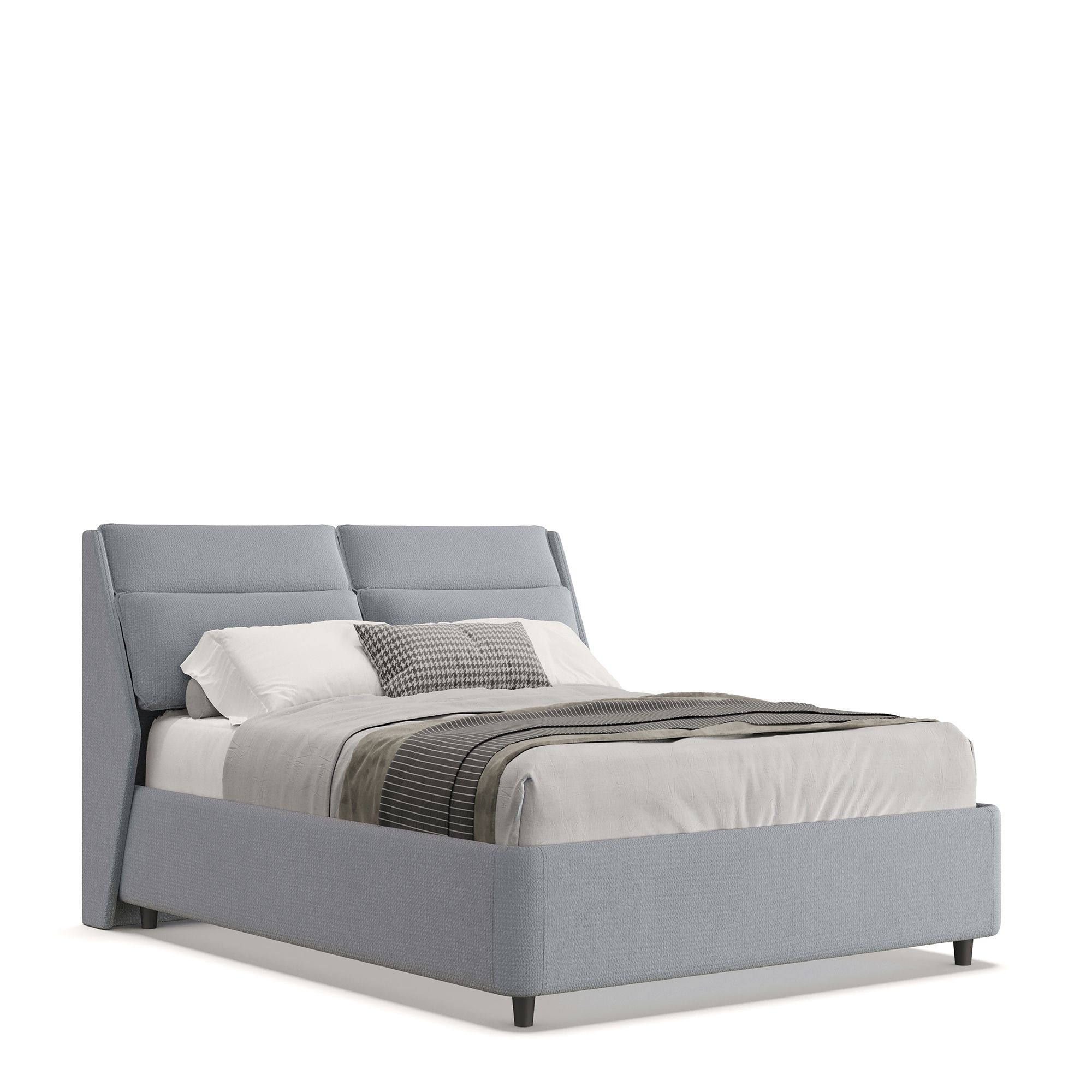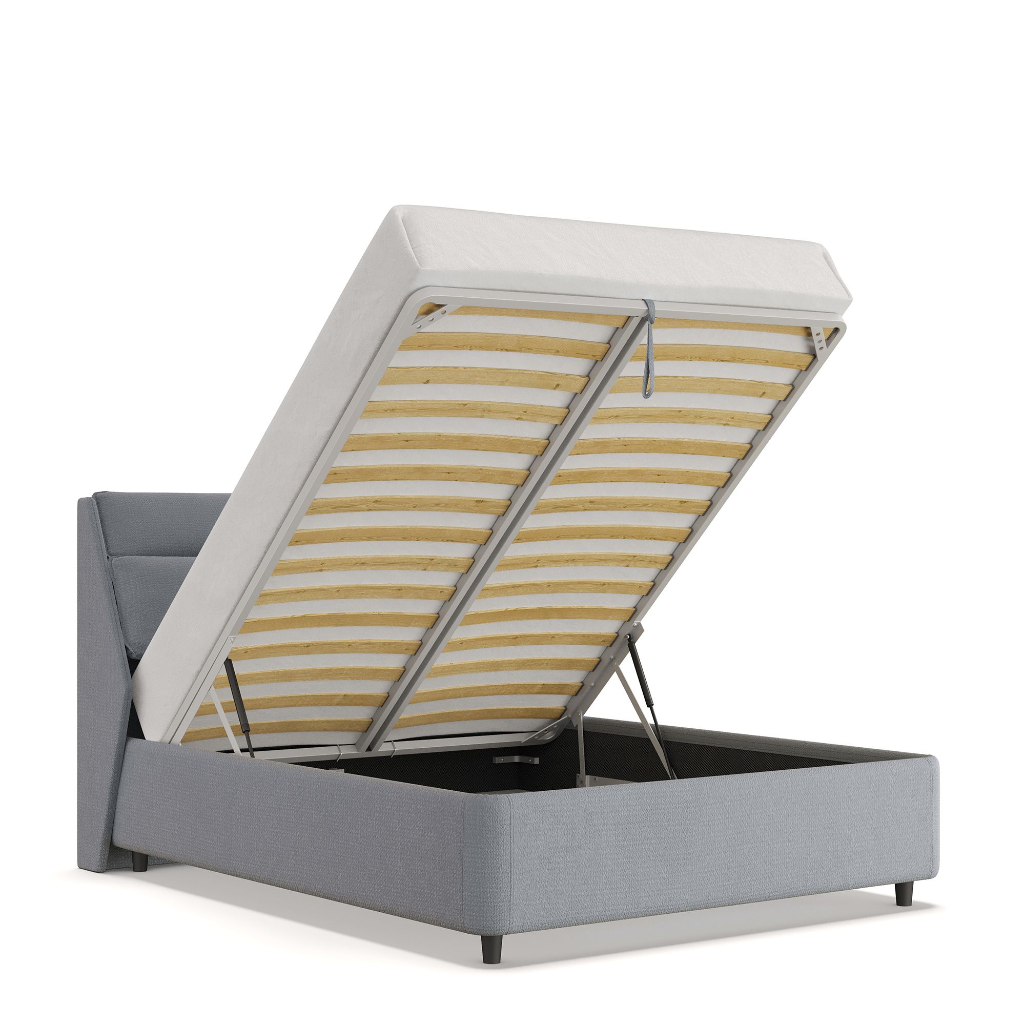Полутораспальная кровать TEWIN выполнена в полностью мягком текстильном корпусе из рогожки, а ее изголовье оснащено необычными подушками, расположенными под углом, чтобы на них было удобно облокотиться, отдыхая за чтением или просмотром сериала. Скругленные углы основания обеспечивают безопасность использования, а дизайн с высокими ножными опорами не создает препятствий при уборке с помощью робота-пылесоса. Модель оснащена надежным подъемным механизмом и вместительным ящиком для белья. Металлическое основание и ортопедическая решетка (каркас – металл) входят в комплектацию.