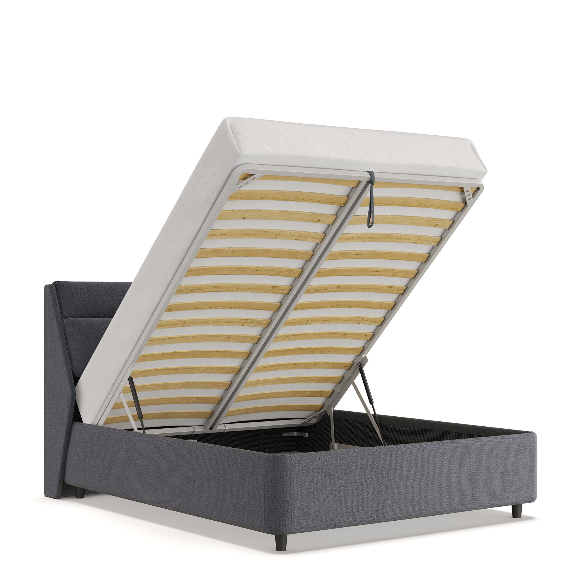Полутораспальная кровать TEWIN выполнена в полностью мягком текстильном корпусе из рогожки, а ее изголовье оснащено необычными подушками, расположенными под углом, чтобы на них было удобно облокотиться, отдыхая за чтением или просмотром сериала. Скругленные углы основания обеспечивают безопасность использования, а дизайн с высокими ножными опорами не создает препятствий при уборке с помощью робота-пылесоса. Модель оснащена надежным подъемным механизмом и вместительным ящиком для белья. Металлическое основание и ортопедическая решетка (каркас – металл) входят в комплектацию.