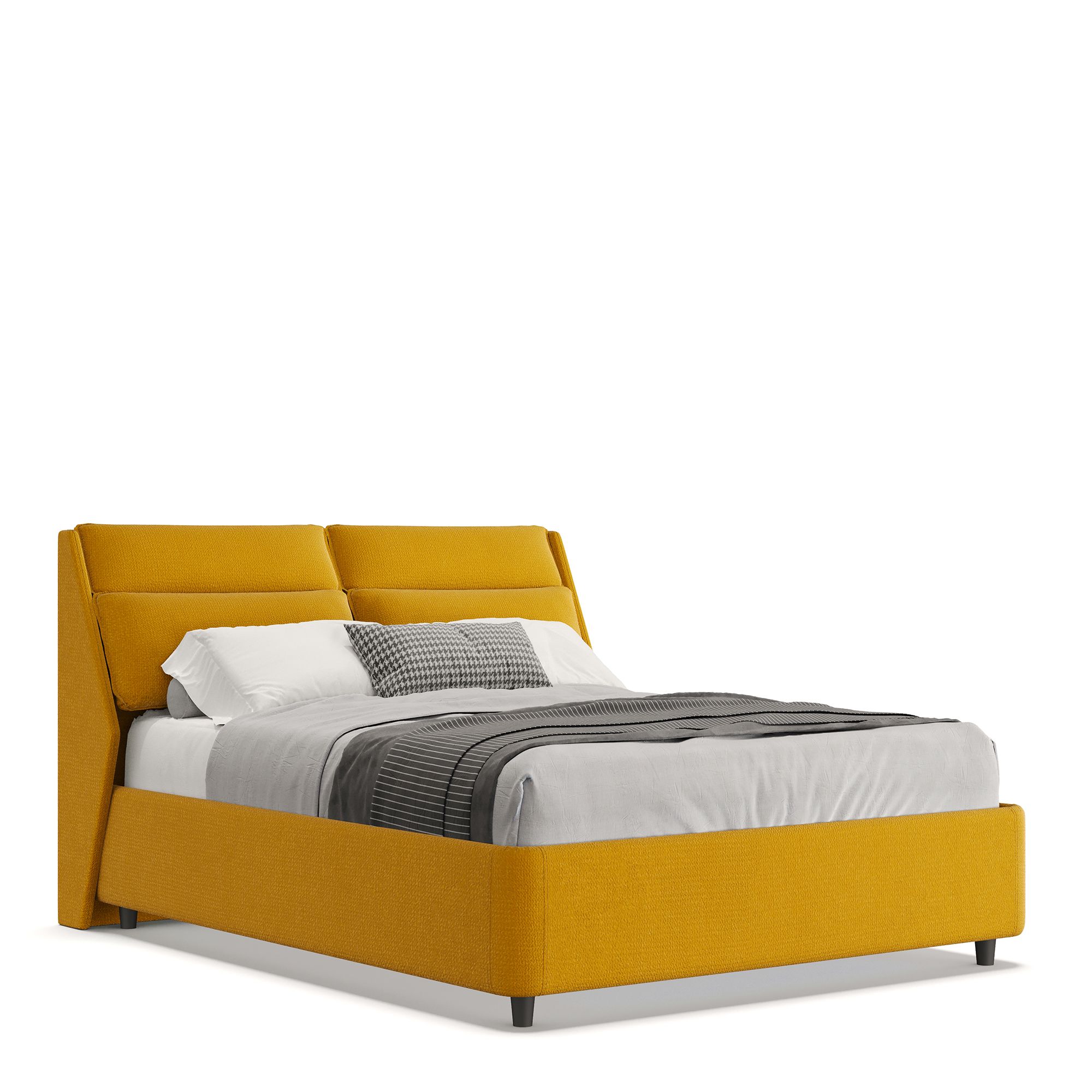 Полутораспальная кровать TEWIN выполнена в полностью мягком текстильном корпусе из рогожки, а ее изголовье оснащено необычными подушками, расположенными под углом, чтобы на них было удобно облокотиться, отдыхая за чтением или просмотром сериала. Скругленные углы основания обеспечивают безопасность использования, а дизайн с высокими ножными опорами не создает препятствий при уборке с помощью робота-пылесоса. Модель оснащена надежным подъемным механизмом и вместительным ящиком для белья. Металлическое основание и ортопедическая решетка (каркас – металл) входят в комплектацию.