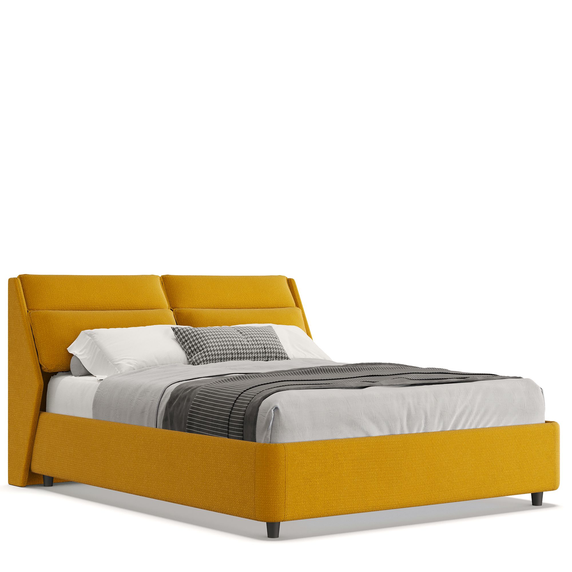Кровать TEWIN выполнена в полностью мягком текстильном корпусе из рогожки, а ее изголовье оснащено необычными подушками, расположенными под углом, чтобы на них было удобно облокотиться, отдыхая за чтением или просмотром сериала. Скругленные углы основания обеспечивают безопасность использования, а дизайн с высокими ножными опорами не создает препятствий при уборке с помощью робота-пылесоса. Модель оснащена надежным подъемным механизмом и вместительным ящиком для белья. Металлическое основание и ортопедическая решетка (каркас – металл) входят в комплектацию.
