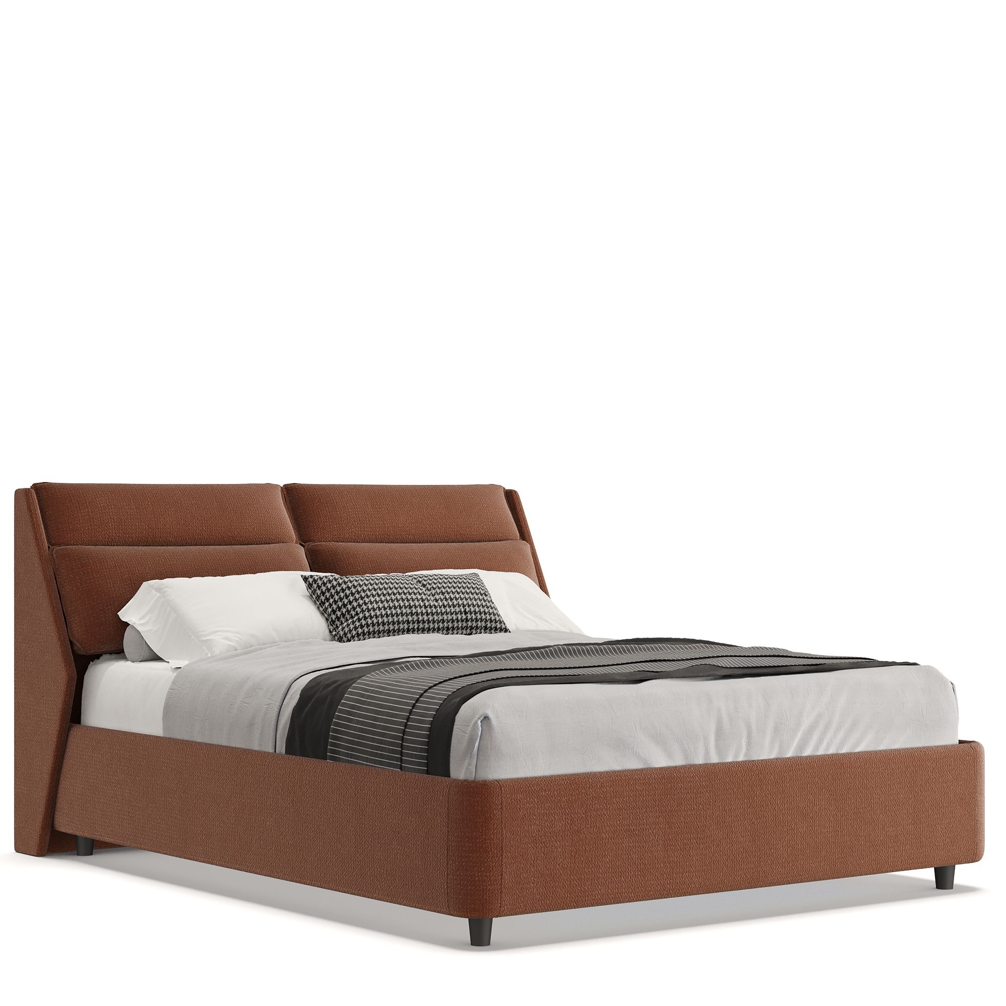 Кровать TEWIN выполнена в полностью мягком текстильном корпусе из рогожки, а ее изголовье оснащено необычными подушками, расположенными под углом, чтобы на них было удобно облокотиться, отдыхая за чтением или просмотром сериала. Скругленные углы основания обеспечивают безопасность использования, а дизайн с высокими ножными опорами не создает препятствий при уборке с помощью робота-пылесоса. Модель оснащена надежным подъемным механизмом и вместительным ящиком для белья. Металлическое основание и ортопедическая решетка (каркас – металл) входят в комплектацию.