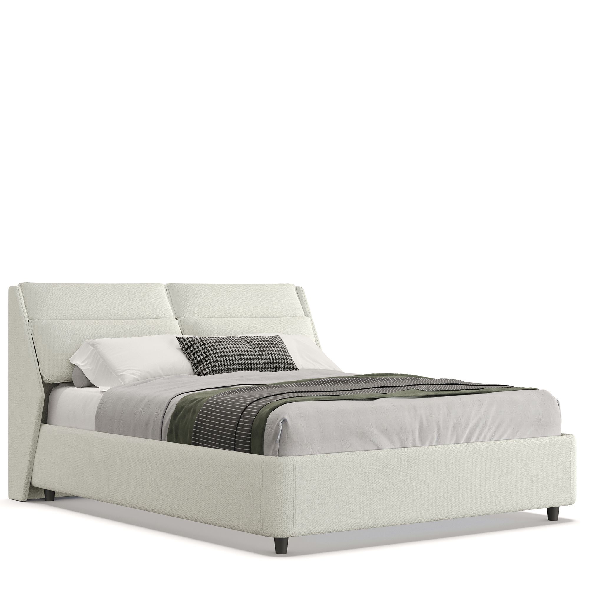 Кровать TEWIN выполнена в полностью мягком текстильном корпусе из рогожки, а ее изголовье оснащено необычными подушками, расположенными под углом, чтобы на них было удобно облокотиться, отдыхая за чтением или просмотром сериала. Скругленные углы основания обеспечивают безопасность использования, а дизайн с высокими ножными опорами не создает препятствий при уборке с помощью робота-пылесоса. Модель оснащена надежным подъемным механизмом и вместительным ящиком для белья. Металлическое основание и ортопедическая решетка (каркас – металл) входят в комплектацию.