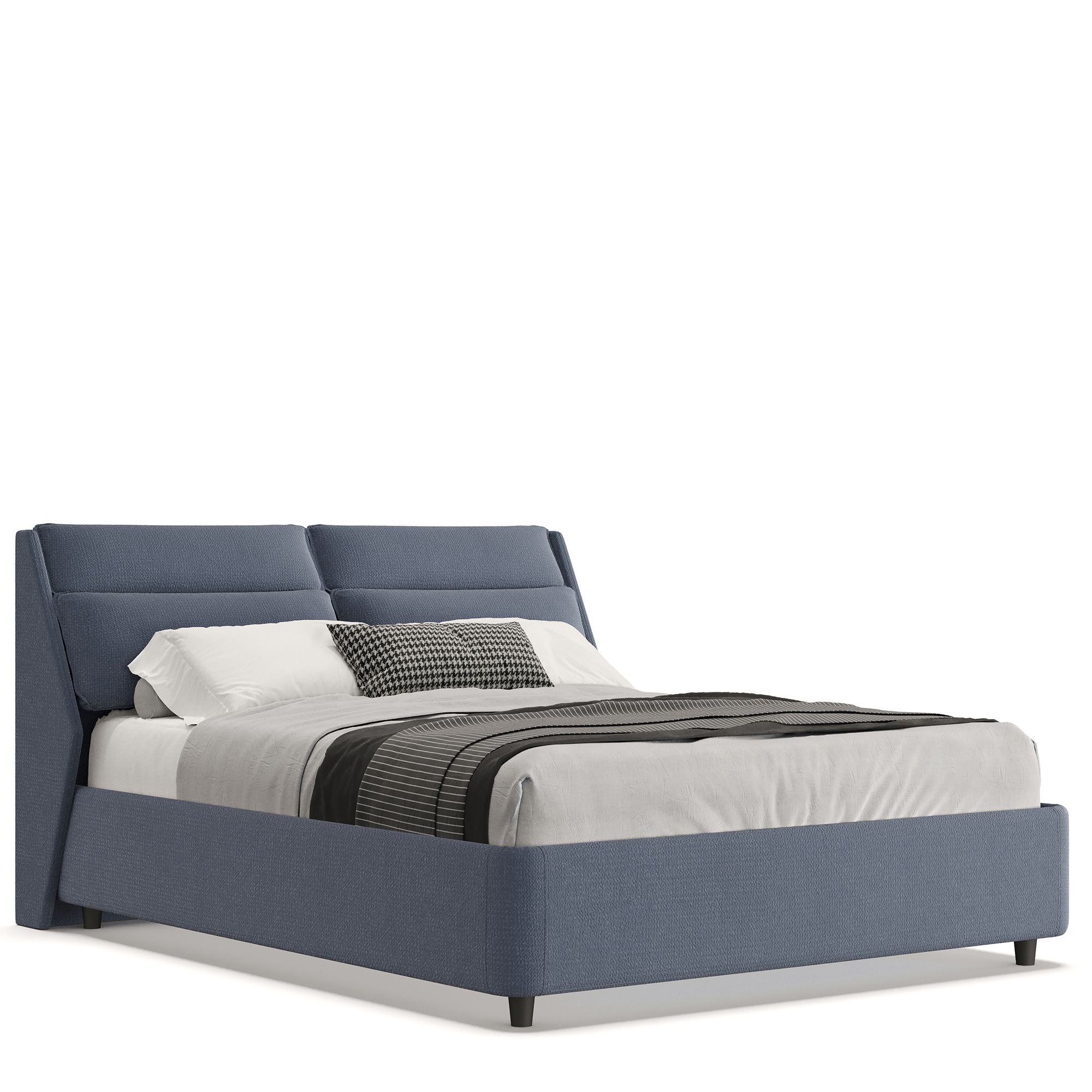 Кровать TEWIN выполнена в полностью мягком текстильном корпусе из рогожки, а ее изголовье оснащено необычными подушками, расположенными под углом, чтобы на них было удобно облокотиться, отдыхая за чтением или просмотром сериала. Скругленные углы основания обеспечивают безопасность использования, а дизайн с высокими ножными опорами не создает препятствий при уборке с помощью робота-пылесоса. Модель оснащена надежным подъемным механизмом и вместительным ящиком для белья. Металлическое основание и ортопедическая решетка (каркас – металл) входят в комплектацию.