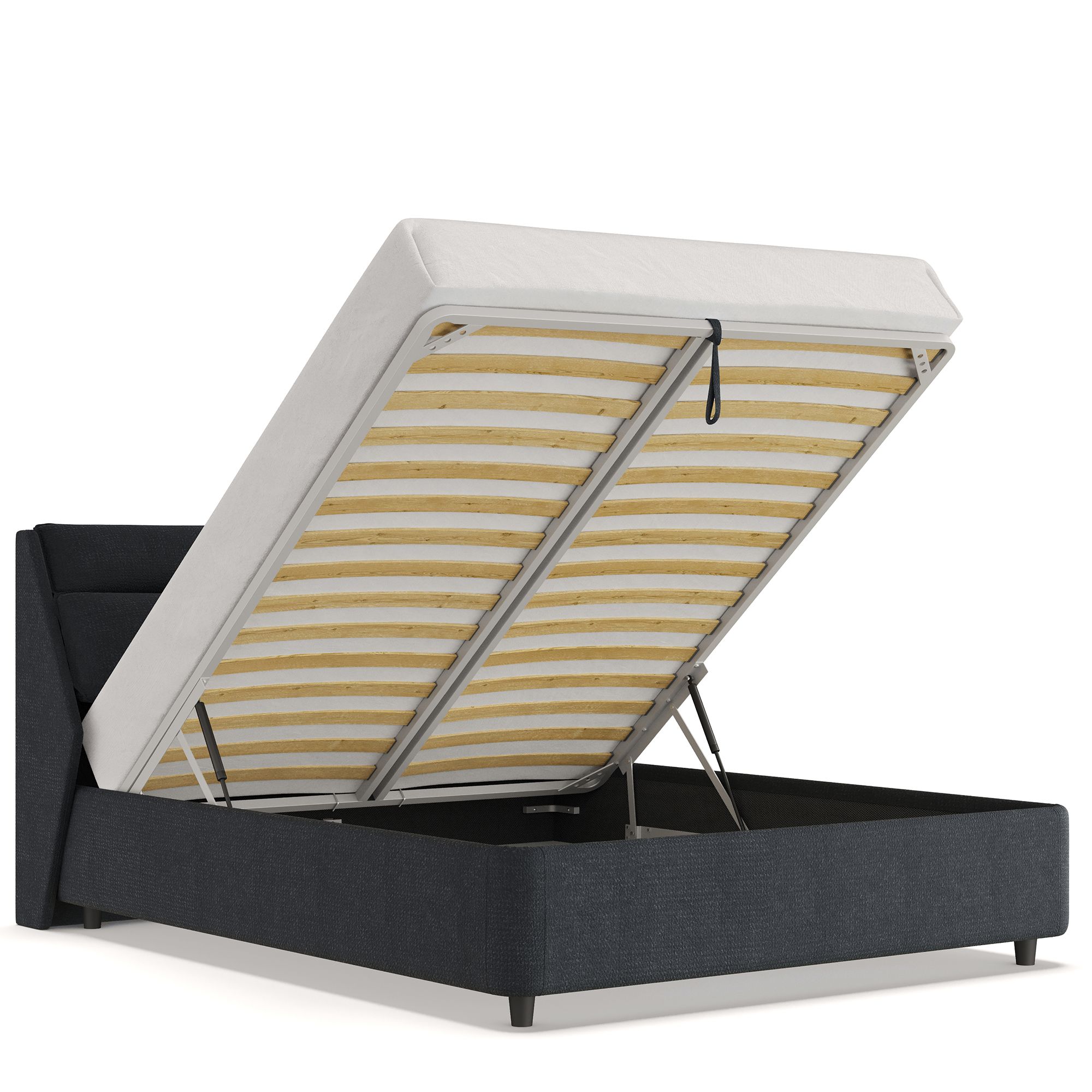 Вместительный короб внутри кровати подойдет для хранения подушек, белья и других вещей. В бельевом ящике нет перегородок – это позволяет использовать его, в том числе, для хранения длинных и крупногабаритных вещей.