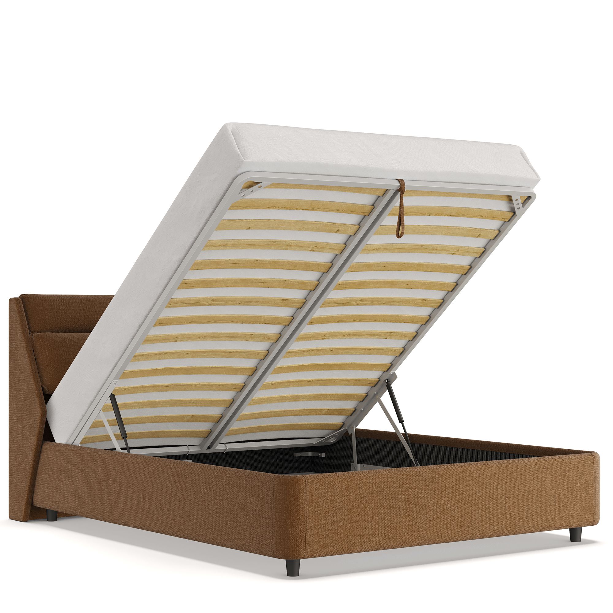 Кровать TEWIN выполнена в полностью мягком текстильном корпусе из рогожки, а ее изголовье оснащено необычными подушками, расположенными под углом, чтобы на них было удобно облокотиться, отдыхая за чтением или просмотром сериала. Скругленные углы основания обеспечивают безопасность использования, а дизайн с высокими ножными опорами не создает препятствий при уборке с помощью робота-пылесоса. Модель оснащена надежным подъемным механизмом и вместительным ящиком для белья. Металлическое основание и ортопедическая решетка (каркас – металл) входят в комплектацию.
