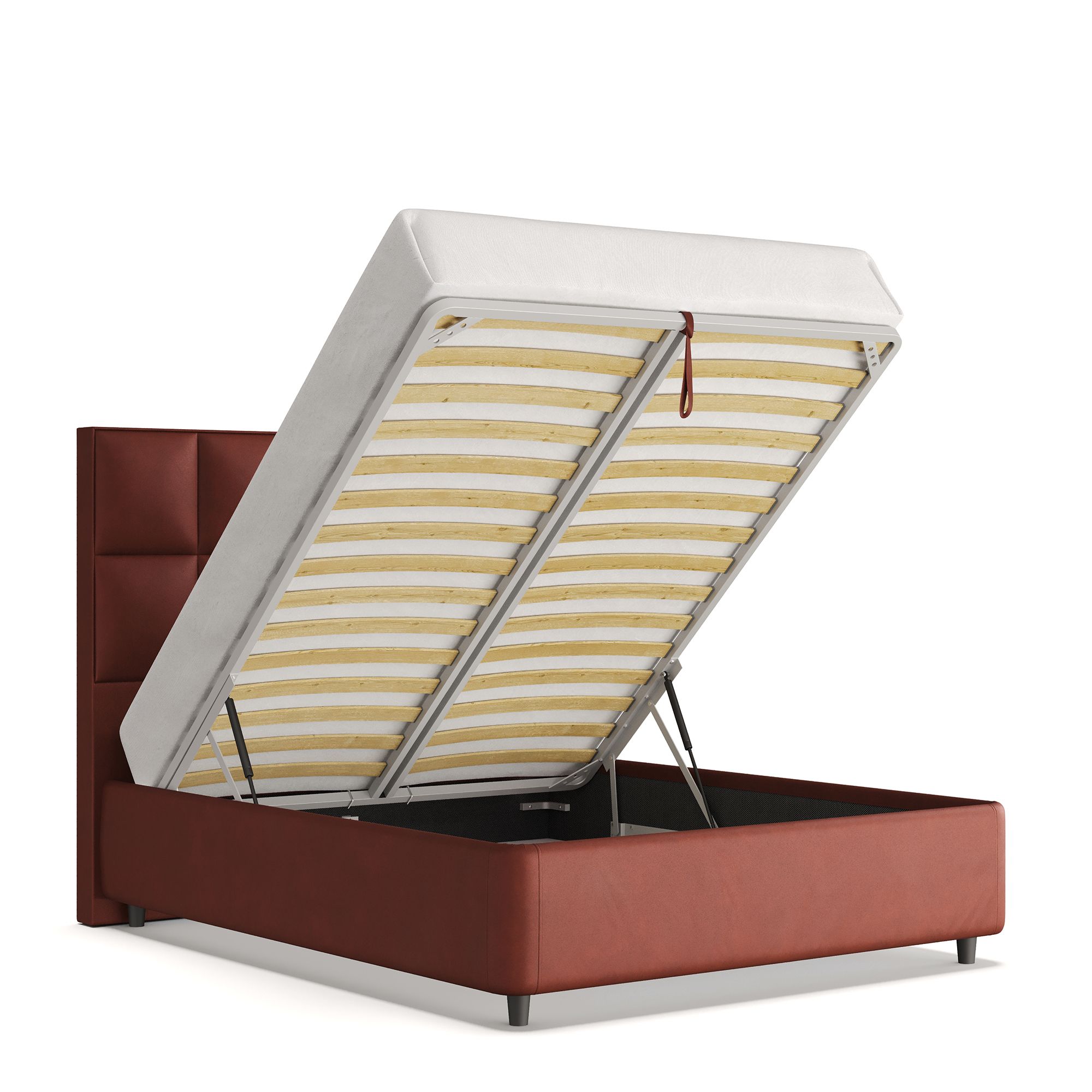Механизм на газовых лифтах надежен и безопасен. Он плавно и бесшумно поднимает матрас, позволяя открывать ящик без особых усилий. Нагрузка на подъемный механизм – до 120 кг. Можно использовать матрас высотой до 32 см.