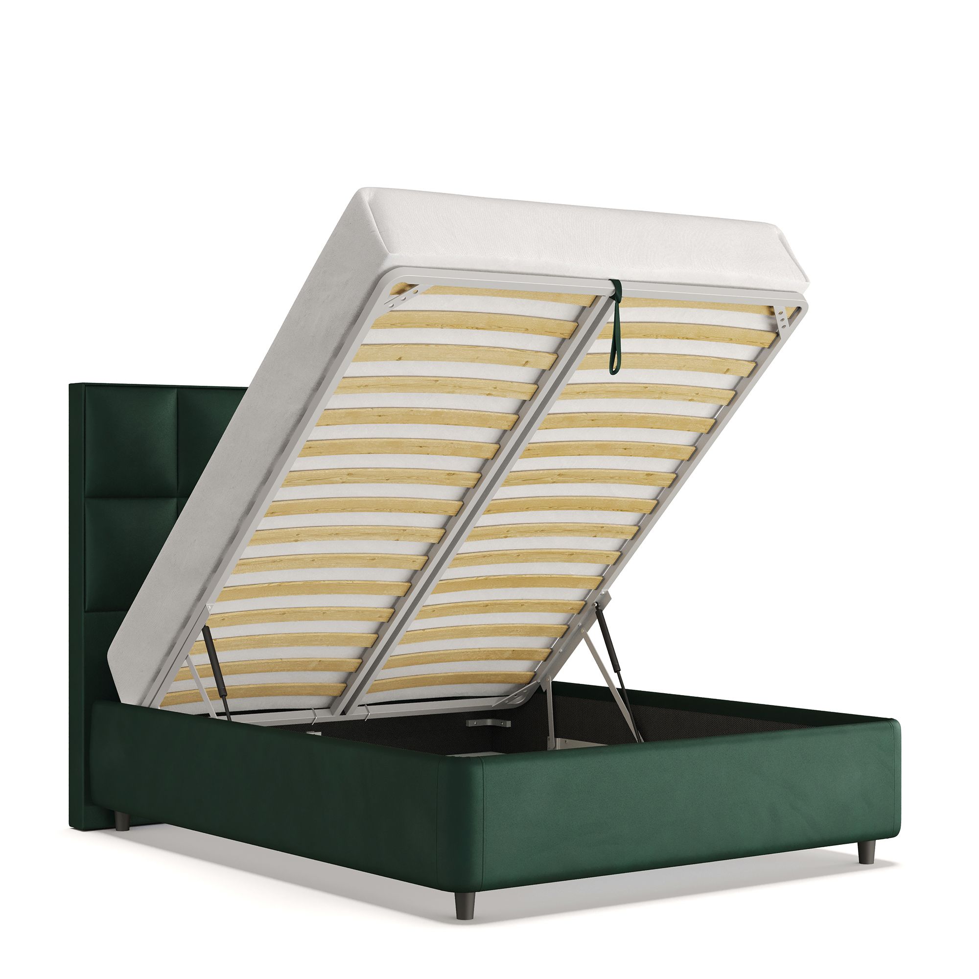 Вместительный короб внутри кровати подойдет для хранения подушек, белья и других вещей. В бельевом ящике нет перегородок – это позволяет использовать его, в том числе, для хранения длинных и крупногабаритных вещей.