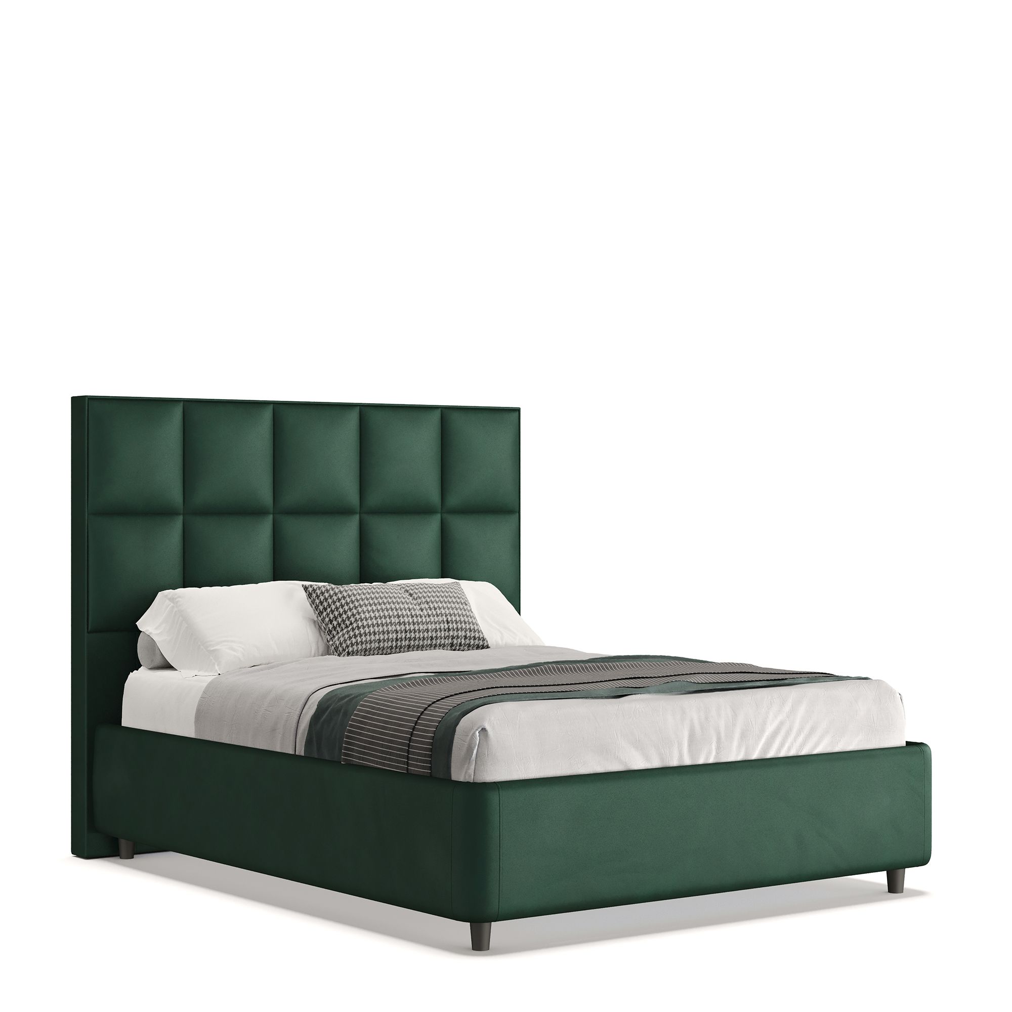 Полутораспальная кровать CORAL в полностью мягком текстильном корпусе отвечает запросам самых взыскательных покупателей, предъявляющих высокие требования к стилю и комфорту. Особое внимание привлекает изголовье модели, выполненное в отделке тактильно приятной тканью. Мягкое и уютное, оно обеспечивает дополнительную поддержку, создавая оптимальные условия для отдыха и сна. Геометрический узор в виде крупных квадратов делает кровать центральным элементом любой спальни, привнося в пространство четкий ритм. Модель оснащена надежным подъемным механизмом и вместительным ящиком для белья. Металлическое основание и ортопедическая решетка (каркас – металл) входят в комплектацию.