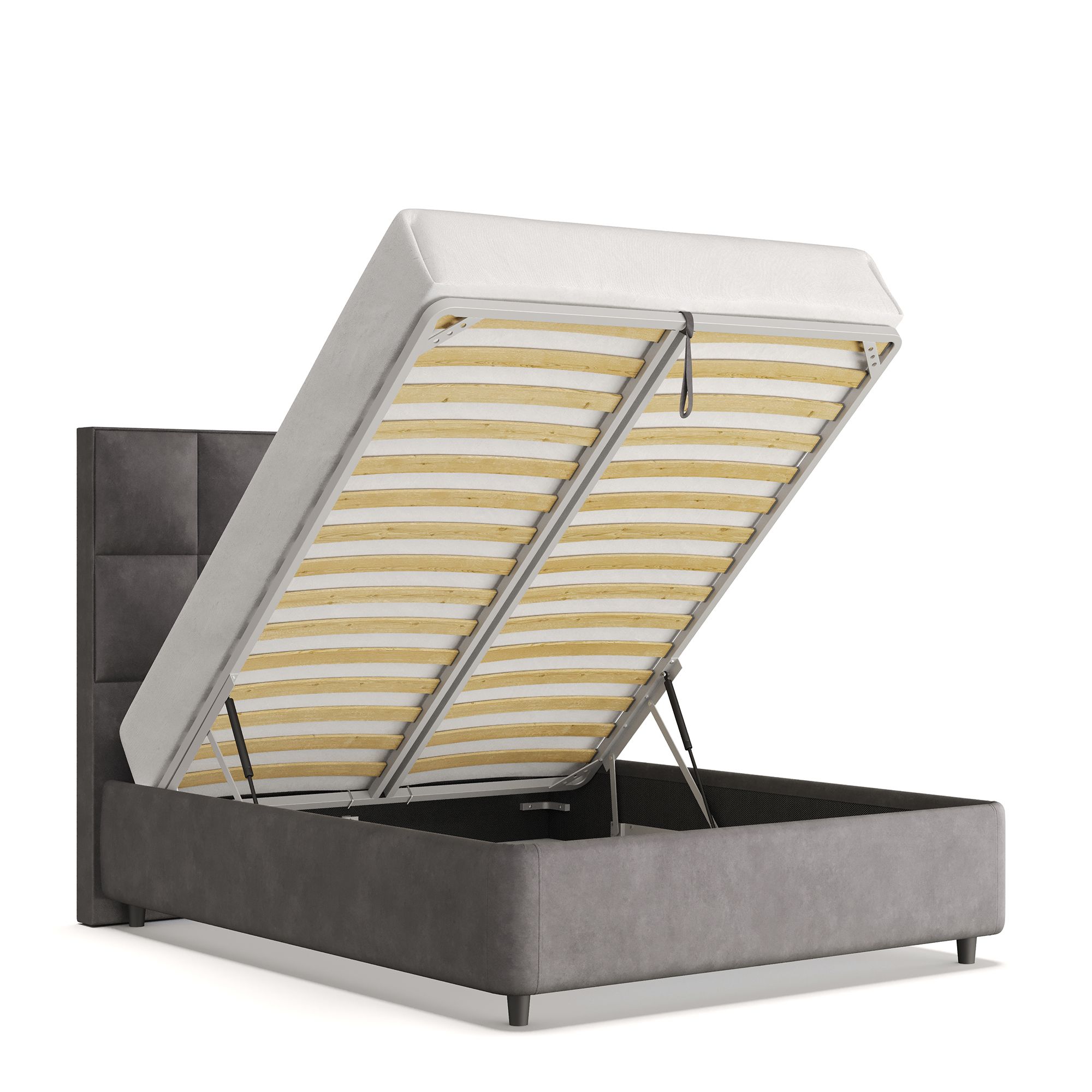 Вместительный короб внутри кровати подойдет для хранения подушек, белья и других вещей. В бельевом ящике нет перегородок – это позволяет использовать его, в том числе, для хранения длинных и крупногабаритных вещей.