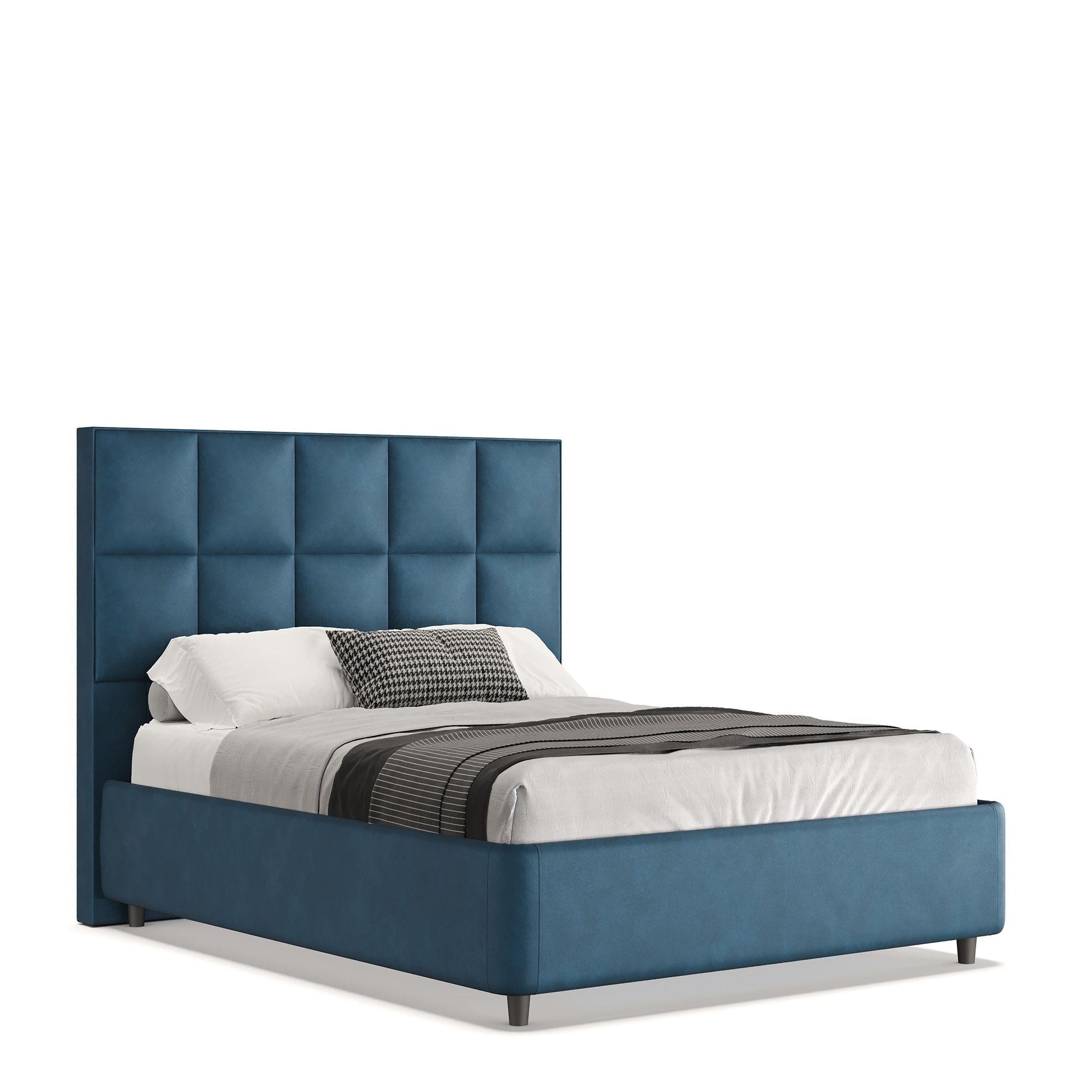 Полутораспальная кровать CORAL в полностью мягком текстильном корпусе отвечает запросам самых взыскательных покупателей, предъявляющих высокие требования к стилю и комфорту. Особое внимание привлекает изголовье модели, выполненное в отделке тактильно приятной тканью. Мягкое и уютное, оно обеспечивает дополнительную поддержку, создавая оптимальные условия для отдыха и сна. Геометрический узор в виде крупных квадратов делает кровать центральным элементом любой спальни, привнося в пространство четкий ритм. Модель оснащена надежным подъемным механизмом и вместительным ящиком для белья. Металлическое основание и ортопедическая решетка (каркас – металл) входят в комплектацию.
