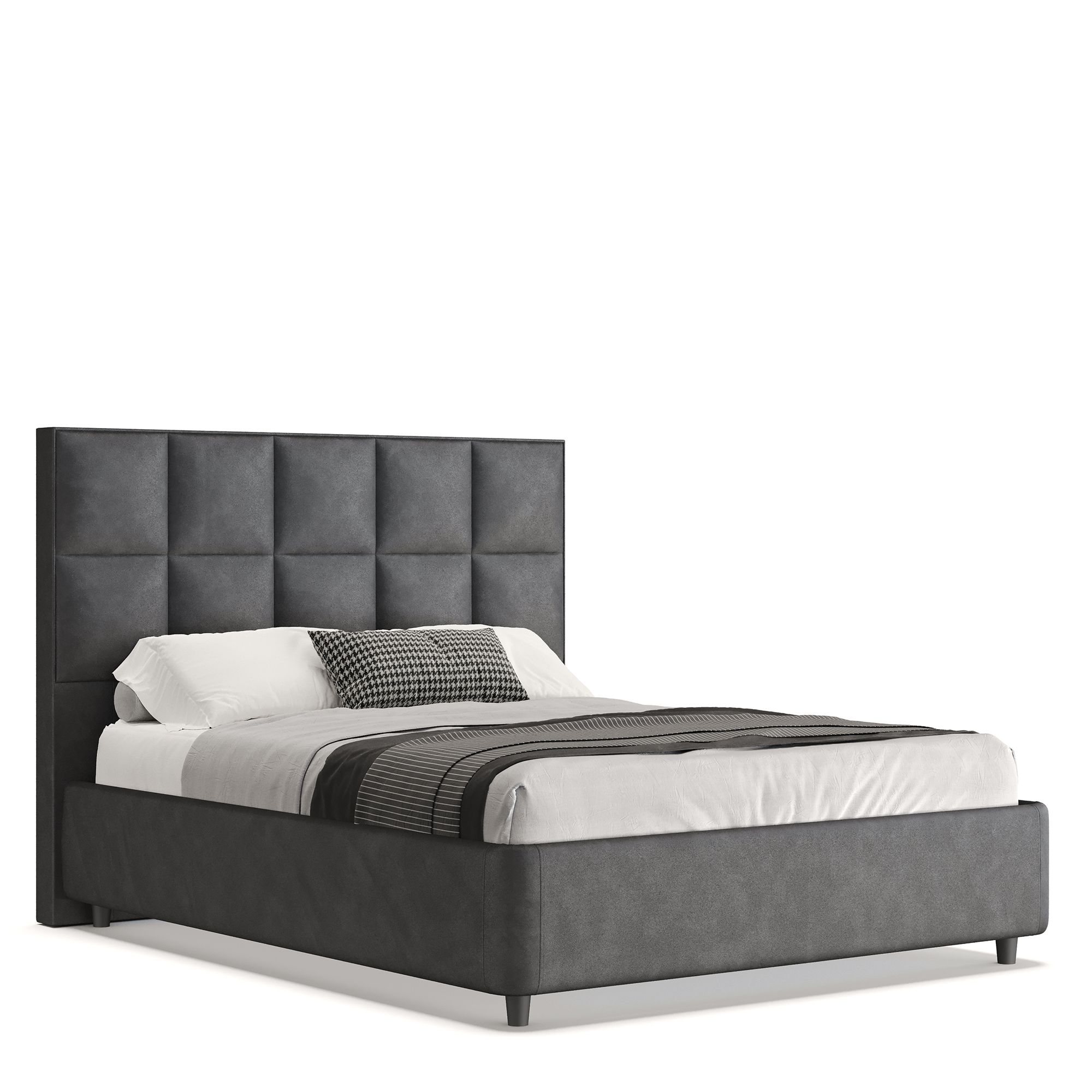 Кровать CORAL в полностью мягком текстильном корпусе отвечает запросам самых взыскательных покупателей, предъявляющих высокие требования к стилю и комфорту. Особое внимание привлекает изголовье модели, выполненное в отделке тактильно приятной тканью. Мягкое и уютное, оно обеспечивает дополнительную поддержку, создавая оптимальные условия для отдыха и сна. Геометрический узор в виде крупных квадратов делает кровать центральным элементом любой спальни, привнося в пространство четкий ритм. Модель оснащена надежным подъемным механизмом и вместительным ящиком для белья. Металлическое основание и ортопедическая решетка (каркас – металл) входят в комплектацию.