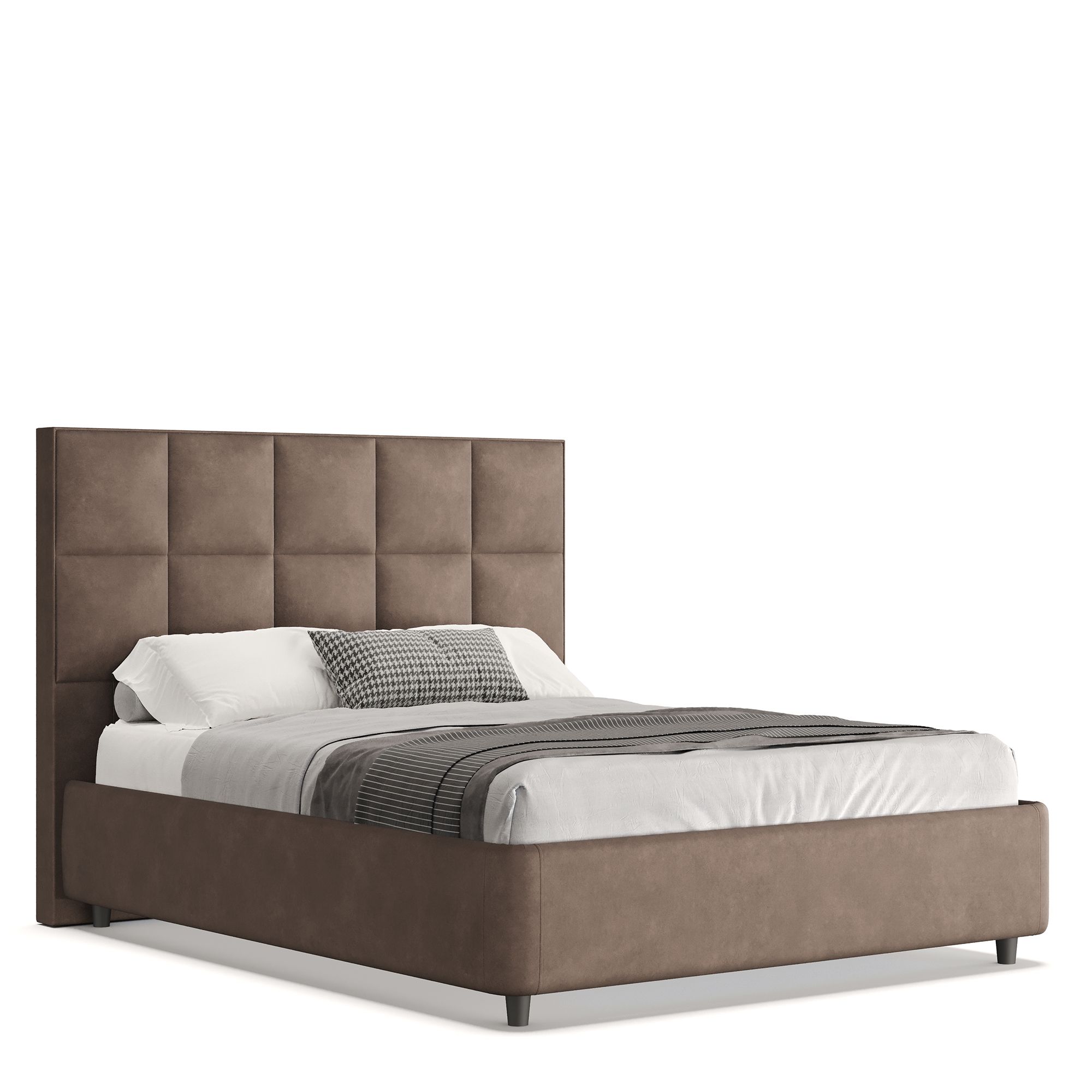 Кровать CORAL в полностью мягком текстильном корпусе отвечает запросам самых взыскательных покупателей, предъявляющих высокие требования к стилю и комфорту. Особое внимание привлекает изголовье модели, выполненное в отделке тактильно приятной тканью. Мягкое и уютное, оно обеспечивает дополнительную поддержку, создавая оптимальные условия для отдыха и сна. Геометрический узор в виде крупных квадратов делает кровать центральным элементом любой спальни, привнося в пространство четкий ритм. Модель оснащена надежным подъемным механизмом и вместительным ящиком для белья. Металлическое основание и ортопедическая решетка (каркас – металл) входят в комплектацию.