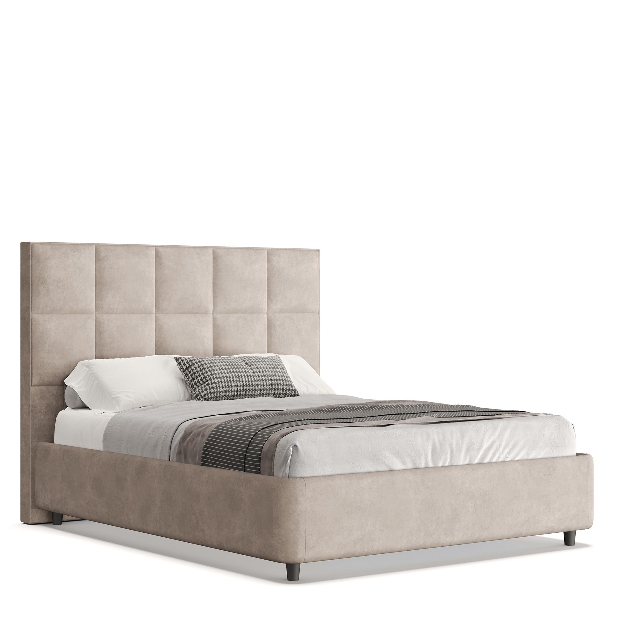 Кровать CORAL в полностью мягком текстильном корпусе отвечает запросам самых взыскательных покупателей, предъявляющих высокие требования к стилю и комфорту. Особое внимание привлекает изголовье модели, выполненное в отделке тактильно приятной тканью. Мягкое и уютное, оно обеспечивает дополнительную поддержку, создавая оптимальные условия для отдыха и сна. Геометрический узор в виде крупных квадратов делает кровать центральным элементом любой спальни, привнося в пространство четкий ритм. Модель оснащена надежным подъемным механизмом и вместительным ящиком для белья. Металлическое основание и ортопедическая решетка (каркас – металл) входят в комплектацию.