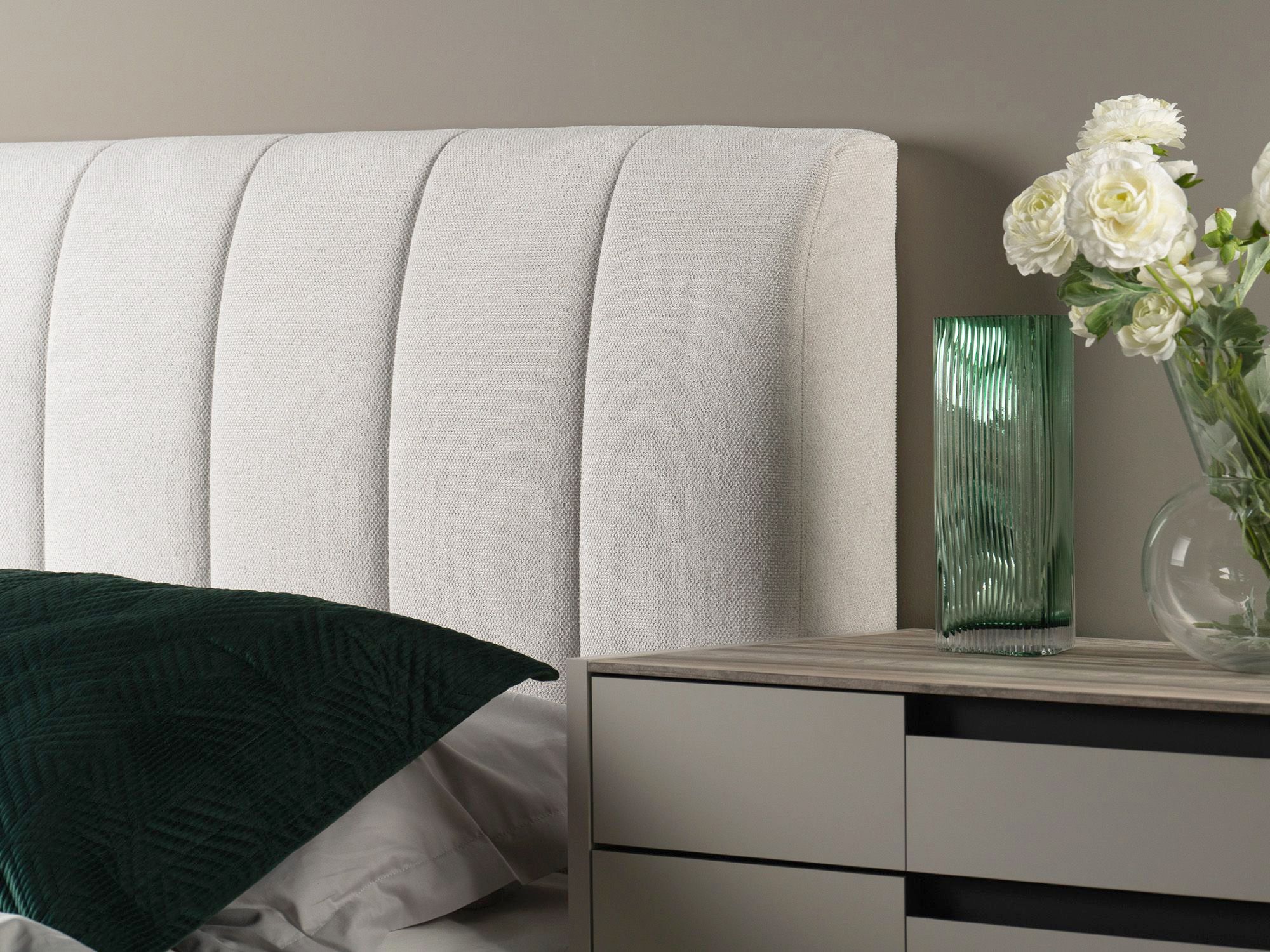 Благодаря мягкому наполнителю изголовья любители чтения перед сном и сериалов смогут расположиться с комфортом. Оборотная сторона изголовья выполнена в обивочной ткани, что позволяет поставить кровать в центре комнаты и зонировать пространство.