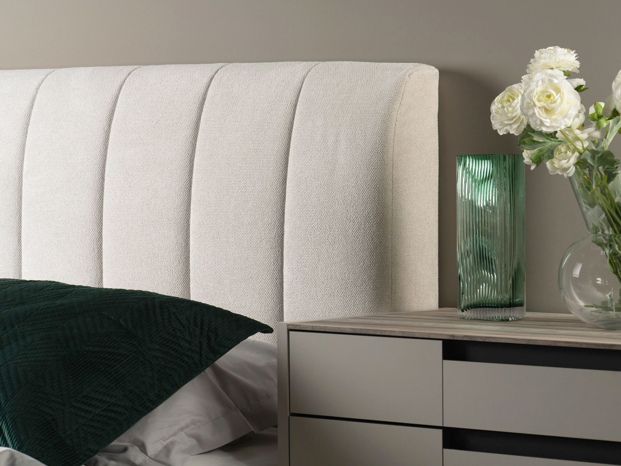 Благодаря мягкому наполнителю изголовья любители чтения перед сном и сериалов смогут расположиться с комфортом. Оборотная сторона изголовья выполнена в обивочной ткани, что позволяет поставить кровать в центре комнаты и зонировать пространство.