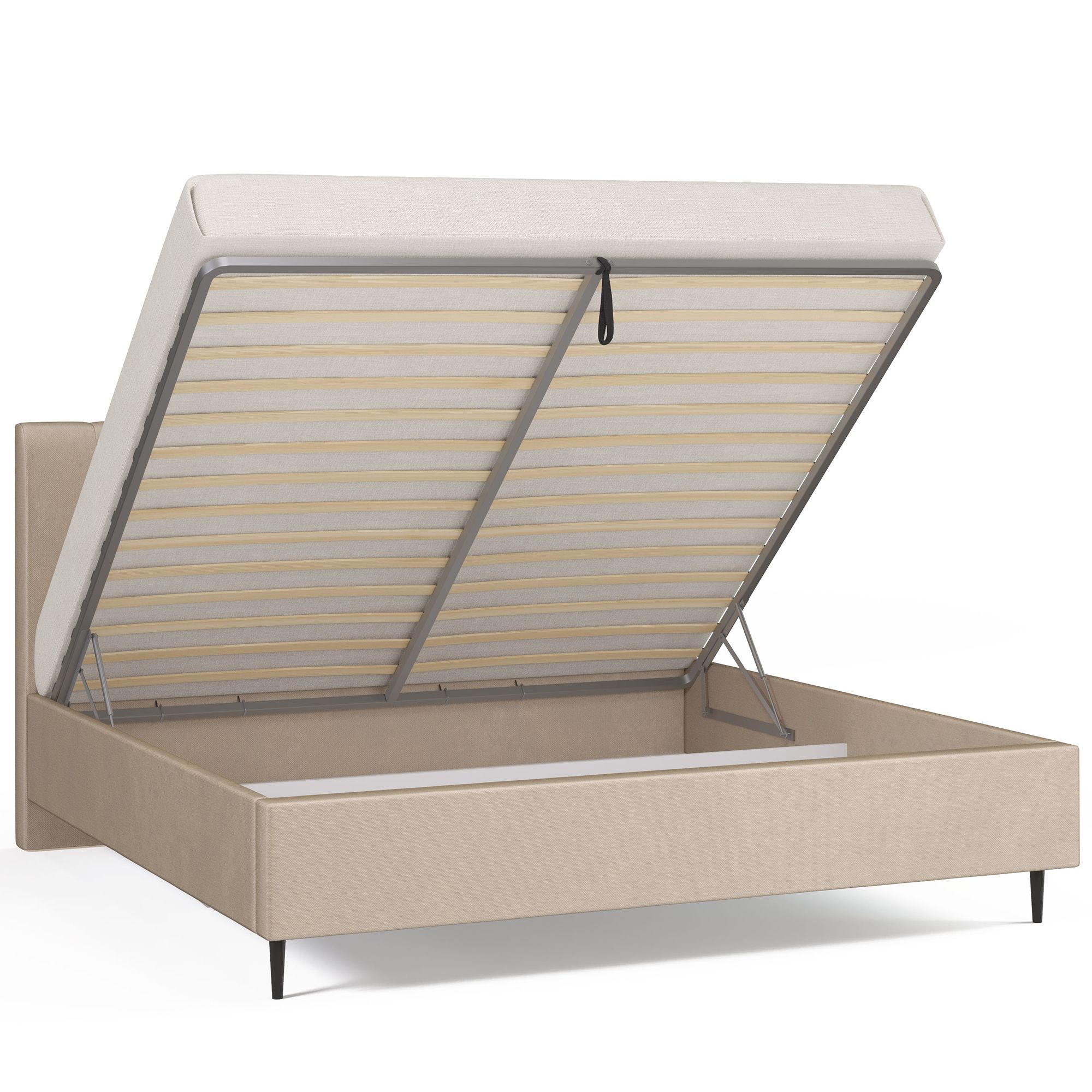 Благодаря продуманному решению крепления (опорные уголки снизу) пространство бельевого ящика выглядит эстетично, а повреждение матраса о крепежные винты исключается, что значительно продлевает ресурс его службы.