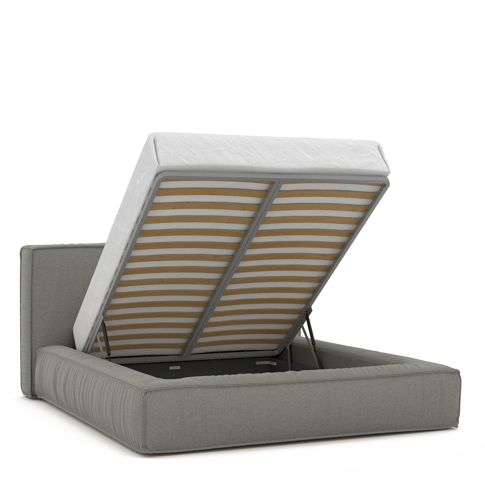Вместительный короб внутри кровати подойдет для хранения подушек, белья и других вещей. В бельевом ящике нет перегородок – это позволяет использовать его, в том числе, для хранения длинных и крупногабаритных вещей.