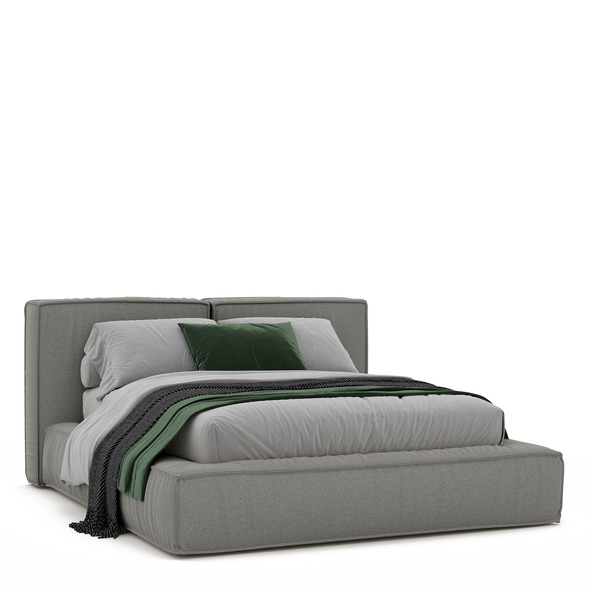Благодаря мягкому наполнителю изголовья любители чтения перед сном и сериалов могут расположиться с комфортом. Выраженный декоративный кант обрамляет кровать, задавая ее очертание. Обивка кровати специально разработана по заказу бренда «Дятьково Design».
