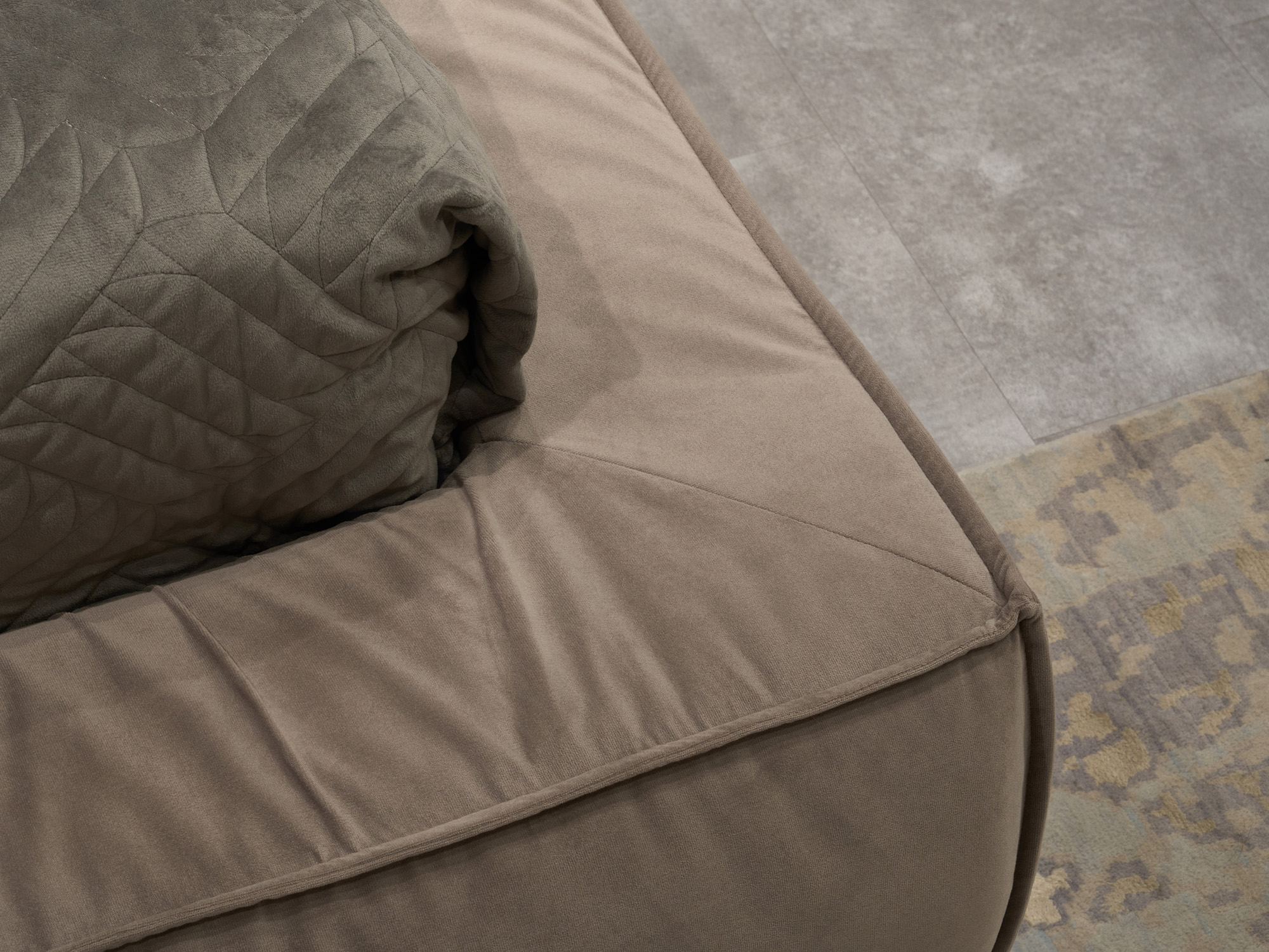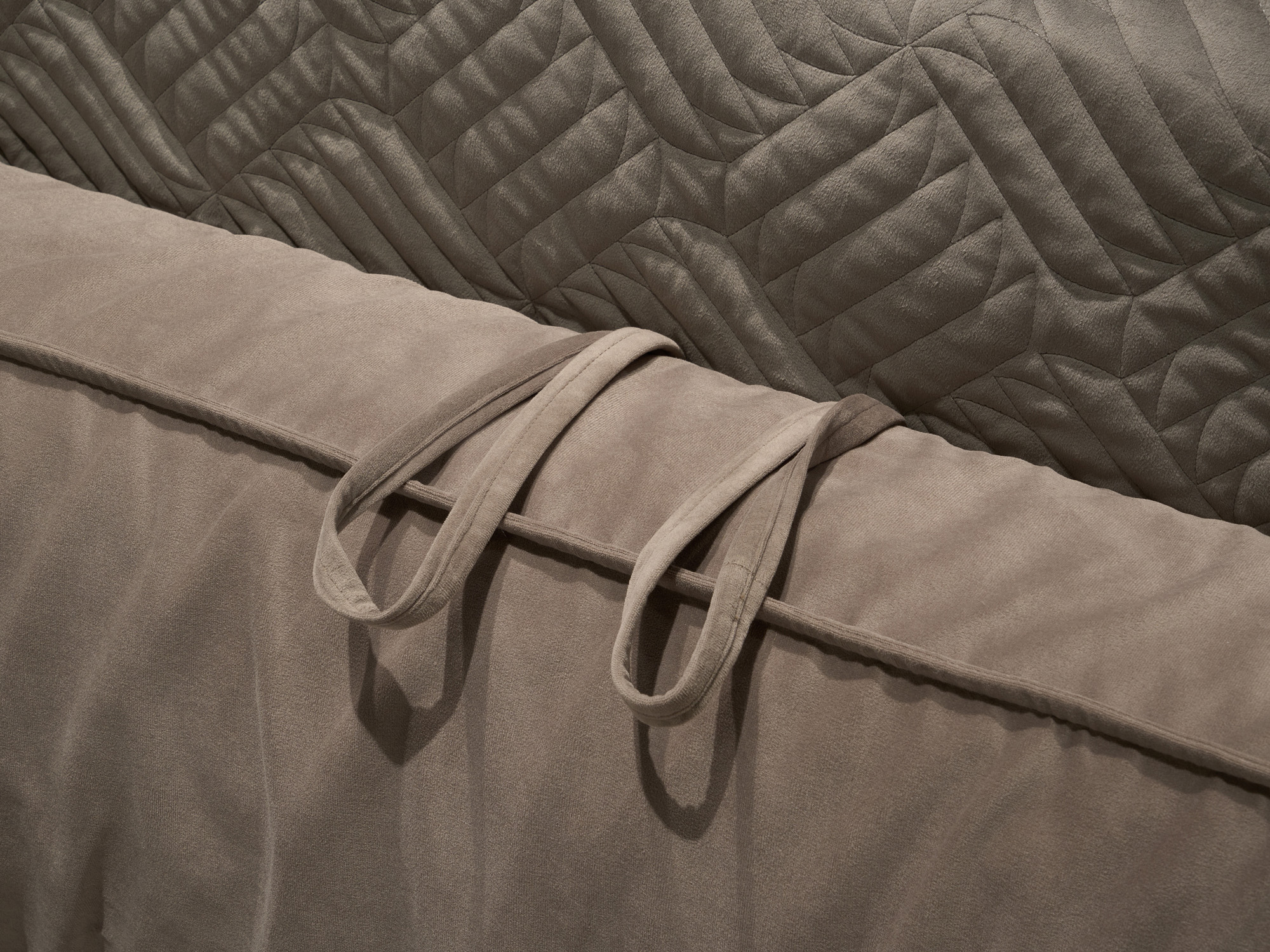 Спинка кровати New York выполнена в форме объемных мягких подушек. Изголовье и периметр изделия оформлены декоративным кантом. Такое сочетание формирует стиль, который будет уместен во всех современных интерьерах, включая стиль лофт. В отделке использована мебельная ткань велюр, которая обладает великолепными тактильными свойствами.