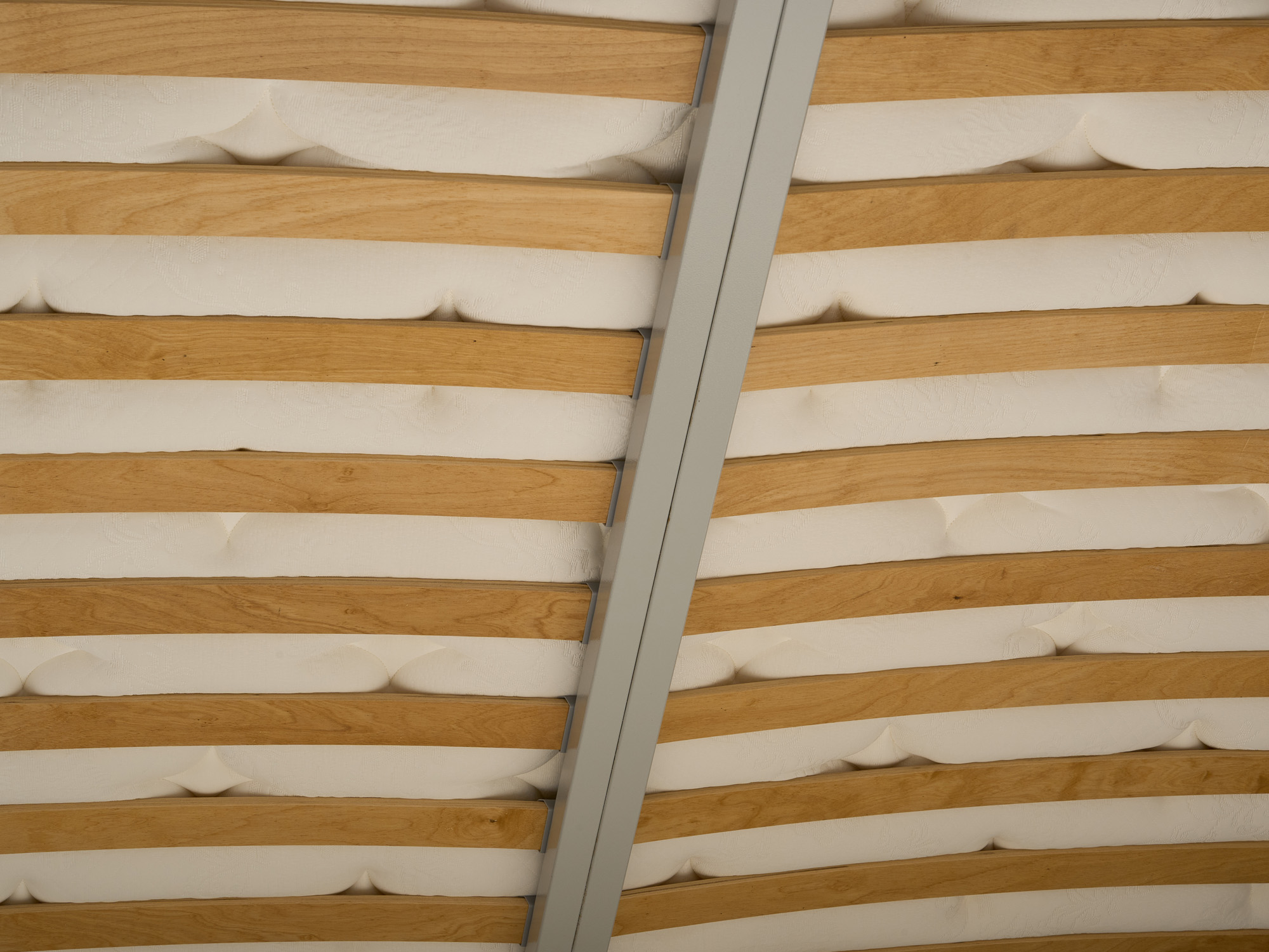 Основание с решёткой – прочное и в то же время чувствительное к нагрузке, что усиливает ортопедический эффект матраса. Благодаря шагу между ламелями матрас непрерывно вентилируется, не задерживает пыль и влагу, что увеличивает срок службы изделия. Ламели изготовлены из берёзы – натуральный материал не вызывает аллергии и безопасен для здоровья.
