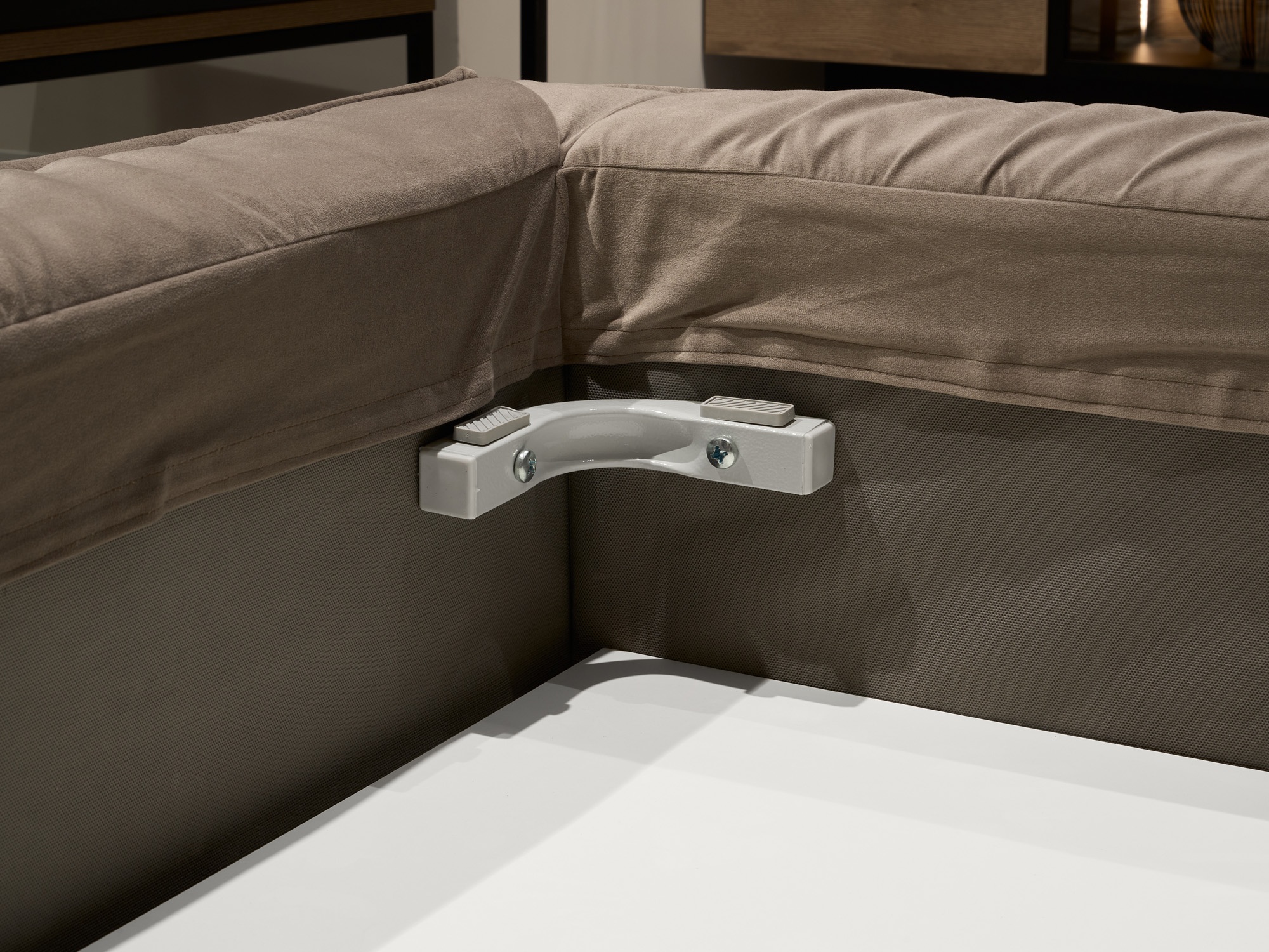 Ортопедическая решетка снабжена двумя тканевыми ручками для удобства подъема. Ручки изготовлены из ткани обивки и не портят внешний вид кровати.