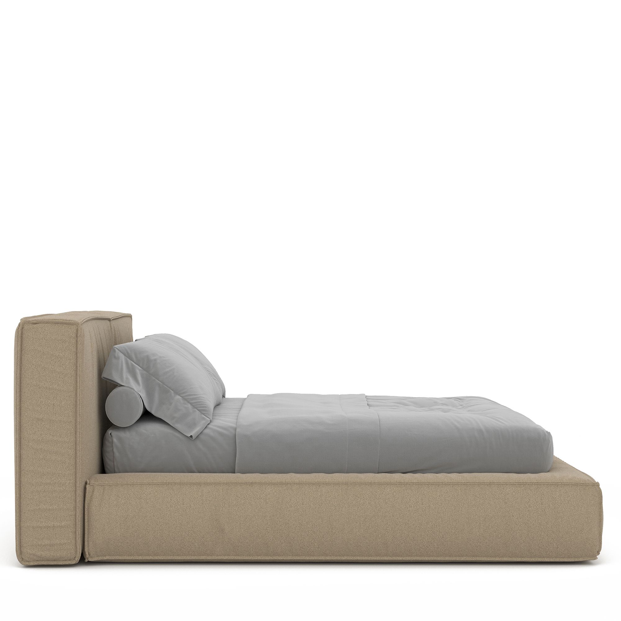 Благодаря мягкому наполнителю изголовья любители чтения перед сном и сериалов могут расположиться с комфортом. Выраженный декоративный кант обрамляет кровать, задавая ее очертание. Обивка кровати специально разработана по заказу бренда «Дятьково Design».