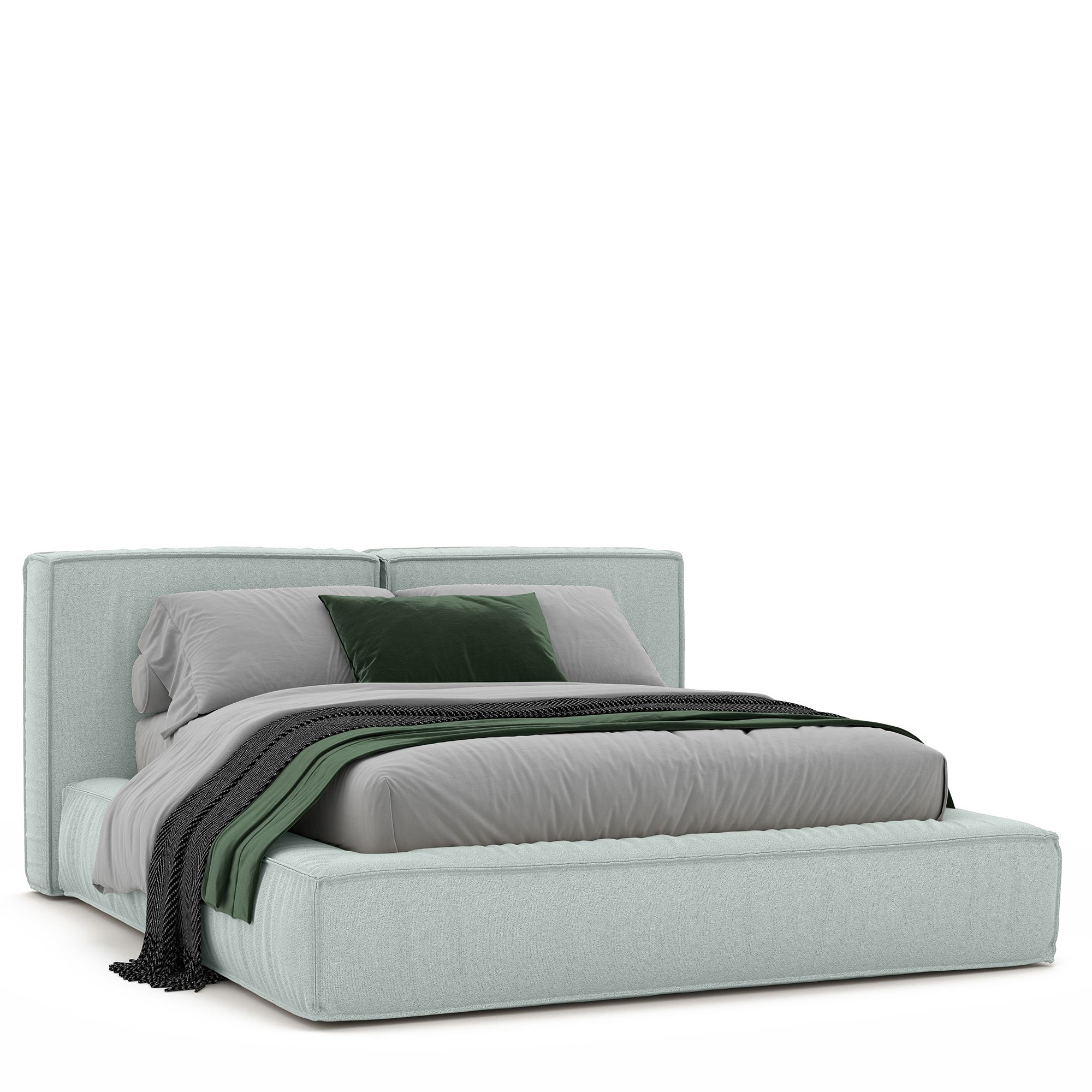 Благодаря мягкому наполнителю изголовья любители чтения перед сном и сериалов могут расположиться с комфортом. Выраженный декоративный кант обрамляет кровать, задавая ее очертание. Обивка кровати специально разработана по заказу бренда «Дятьково Design».