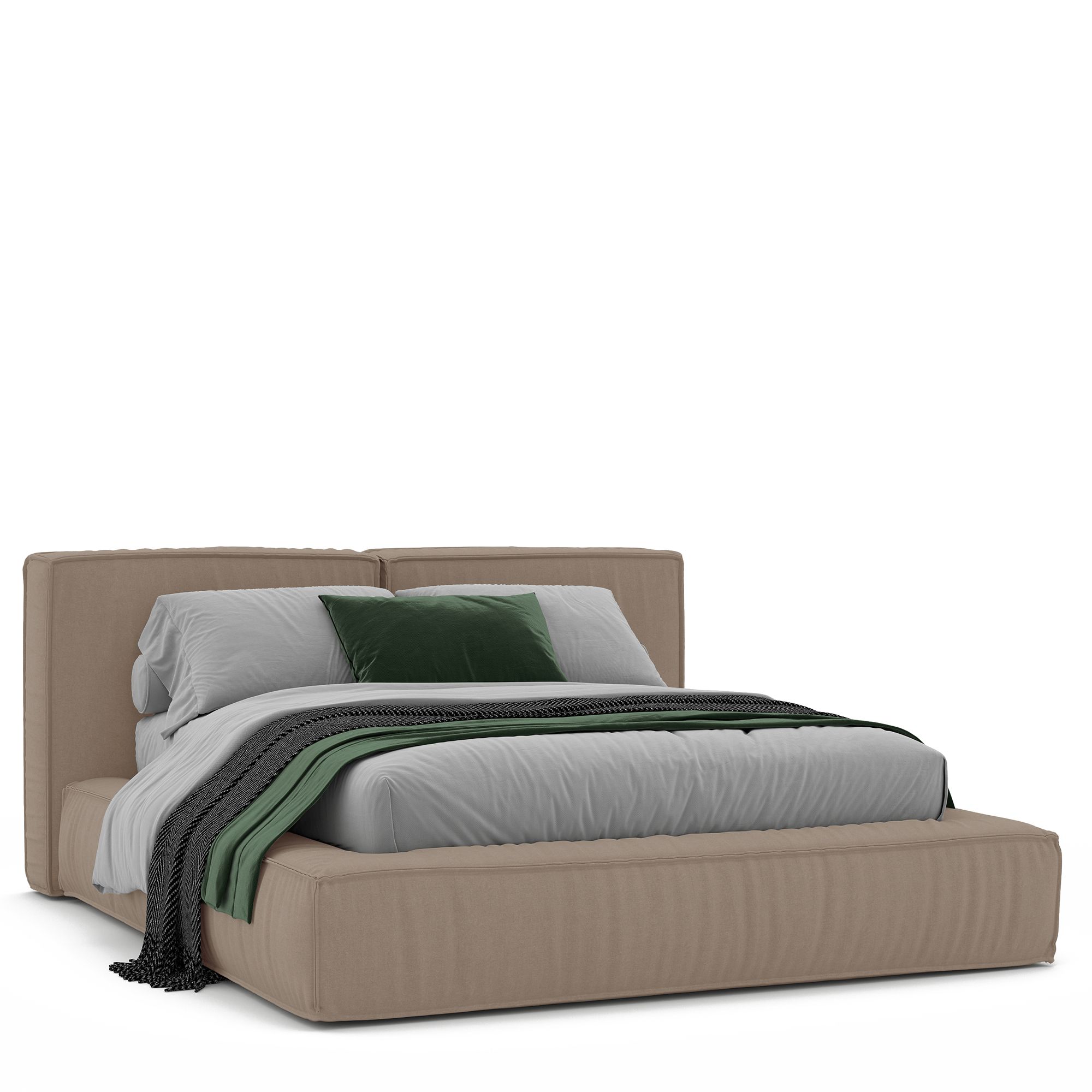 Благодаря мягкому наполнителю изголовья любители чтения перед сном и сериалов могут расположиться с комфортом. Выраженный декоративный кант обрамляет кровать, задавая ее очертание. Обивка кровати специально разработана по заказу бренда «Дятьково Design».