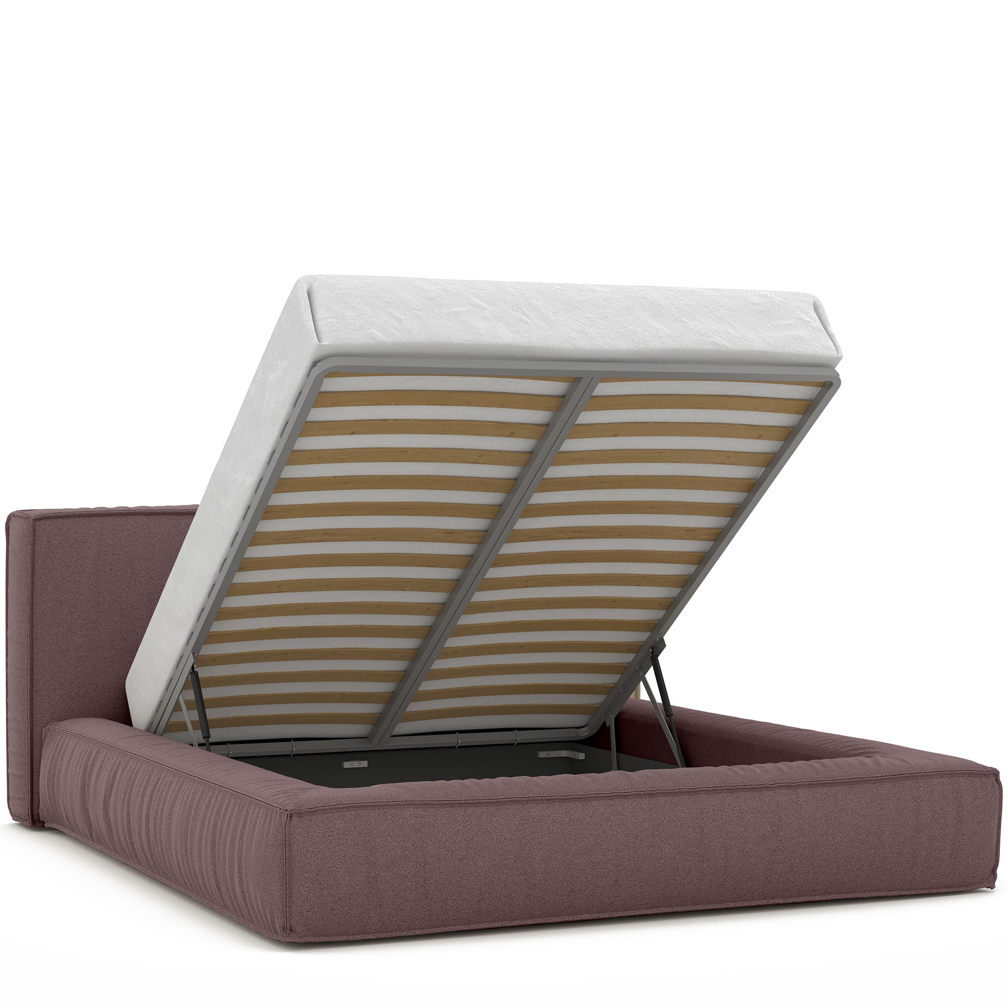Вместительный короб внутри кровати подойдет для хранения подушек, белья и других вещей. В бельевом ящике нет перегородок – это позволяет использовать его, в том числе, для хранения длинных и крупногабаритных вещей.