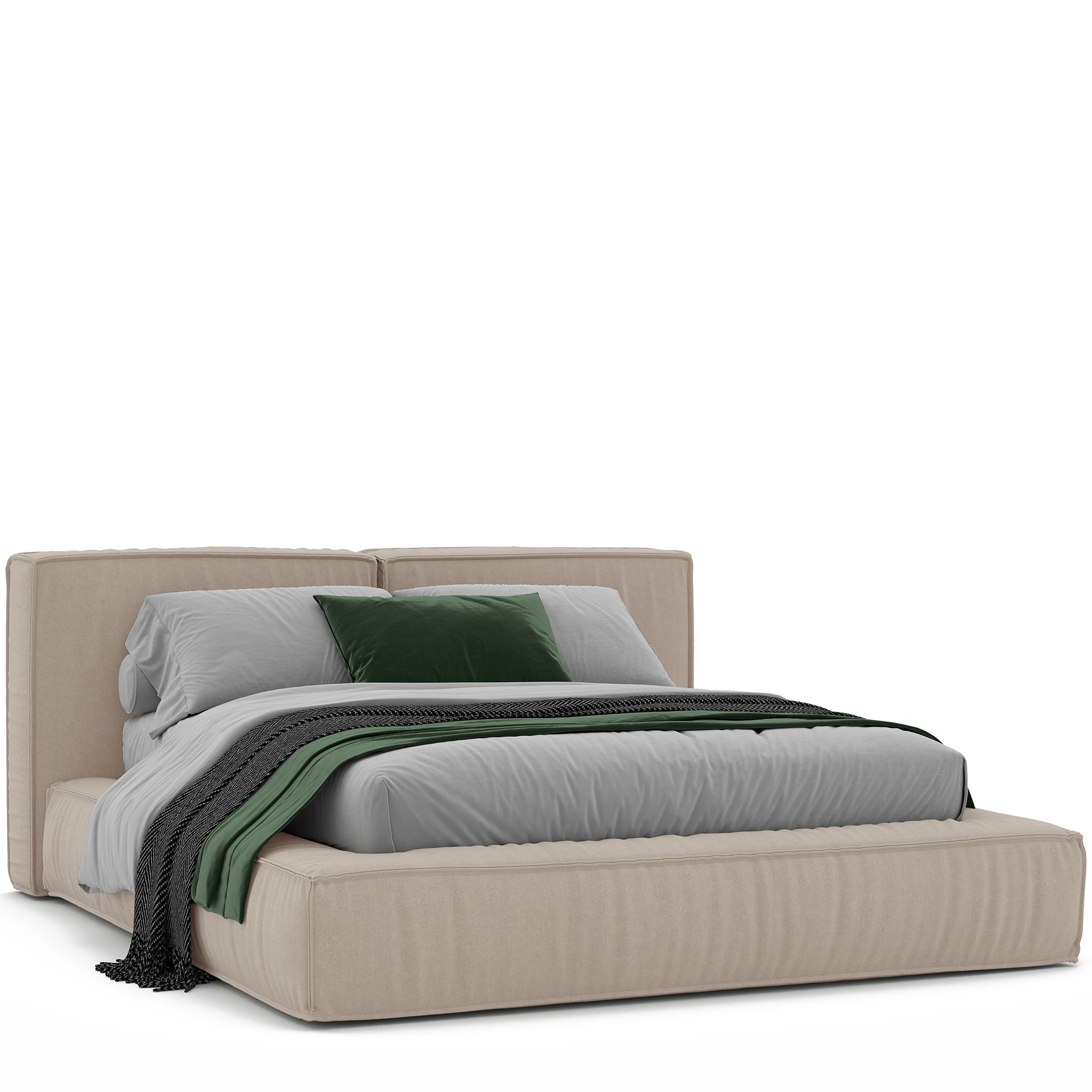 Благодаря мягкому наполнителю изголовья любители чтения перед сном и сериалов могут расположиться с комфортом. Выраженный декоративный кант обрамляет кровать, задавая ее очертание. Обивка кровати специально разработана по заказу бренда «Дятьково Design».
