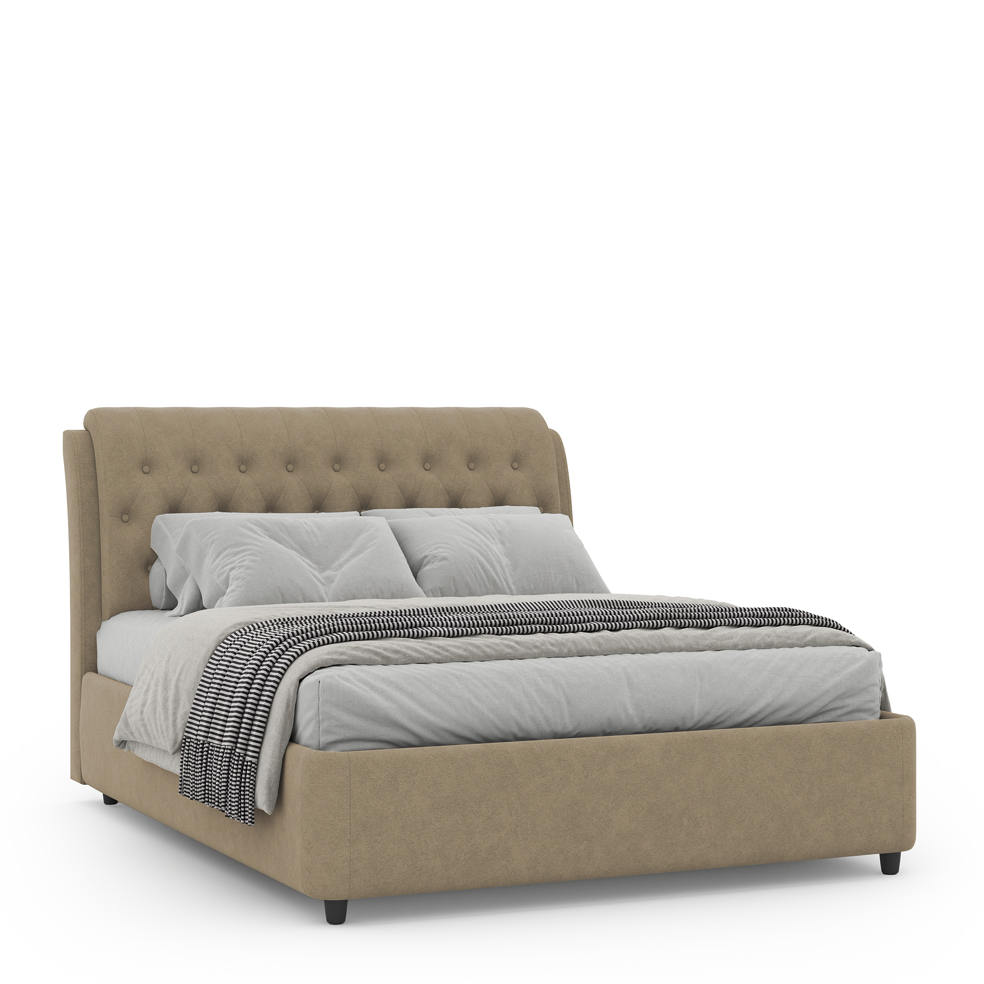 Кровать FLORINA в мягком текстильном корпусе оснащена высоким изголовьем. Съемный чехол можно подвергать профессиональной химчистке. Цельносварное металлическое основание обладает высокой прочностью, не скрипит и не ломается в процессе эксплуатации. В основании модели располагается вместительный бельевой ящик с подъемным механизмом.