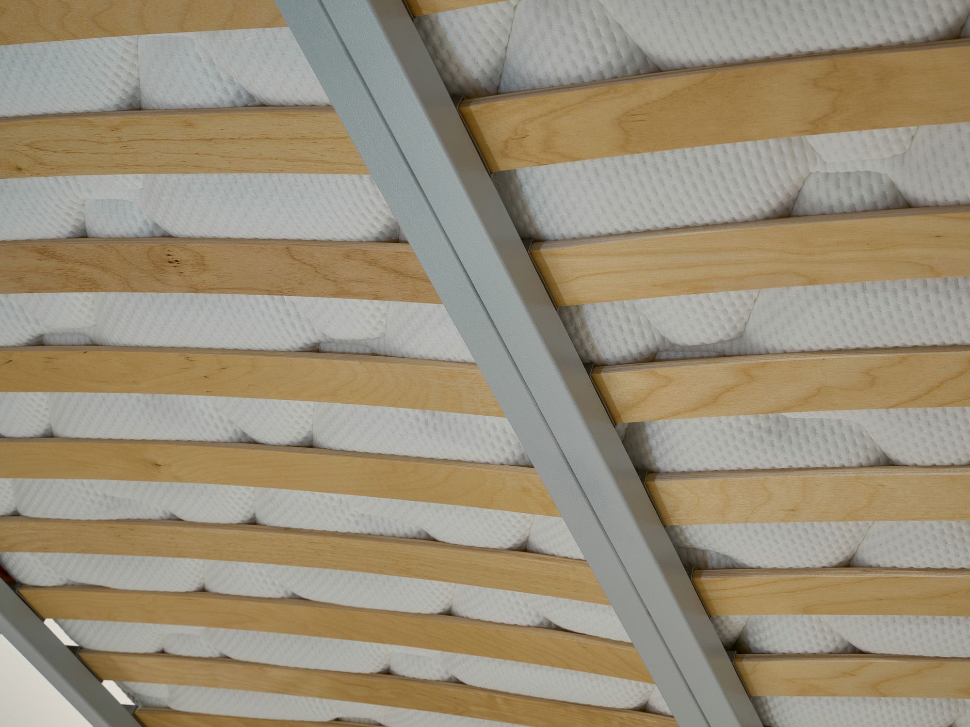 Изогнутая форма березовых ламелей придает основанию кровати высокую прочность и дополняет полезные свойства матраса.
