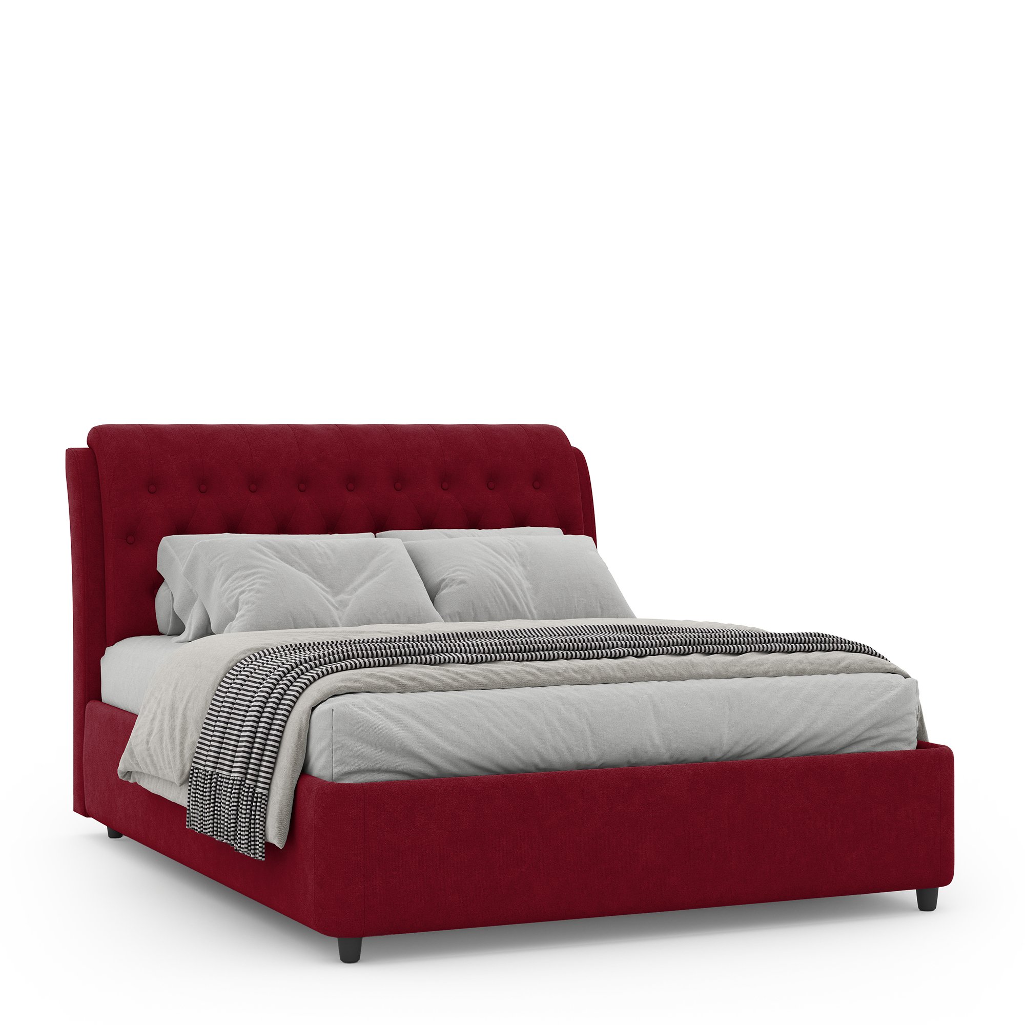 Кровать FLORINA в мягком текстильном корпусе оснащена высоким изголовьем. Съемный чехол можно подвергать профессиональной химчистке. Цельносварное металлическое основание обладает высокой прочностью, не скрипит и не ломается в процессе эксплуатации. В основании модели располагается вместительный бельевой ящик с подъемным механизмом.