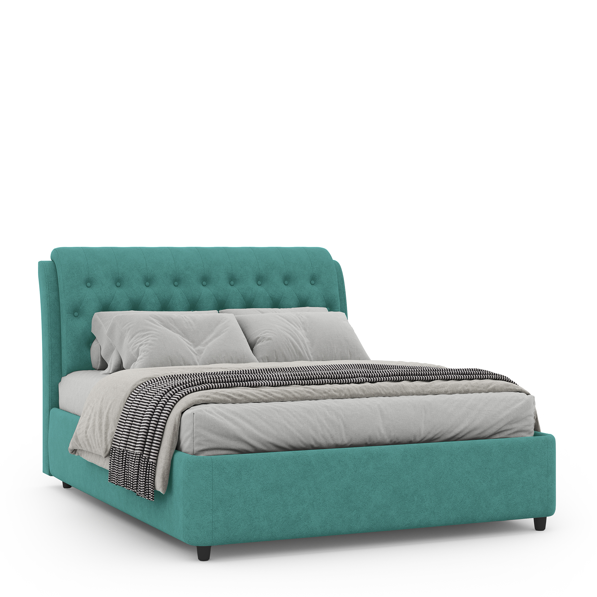 Кровать FLORINA в мягком текстильном корпусе оснащена высоким изголовьем. Съемный чехол можно подвергать профессиональной химчистке. Цельносварное металлическое основание обладает высокой прочностью, не скрипит и не ломается в процессе эксплуатации. В основании модели располагается вместительный бельевой ящик с подъемным механизмом.