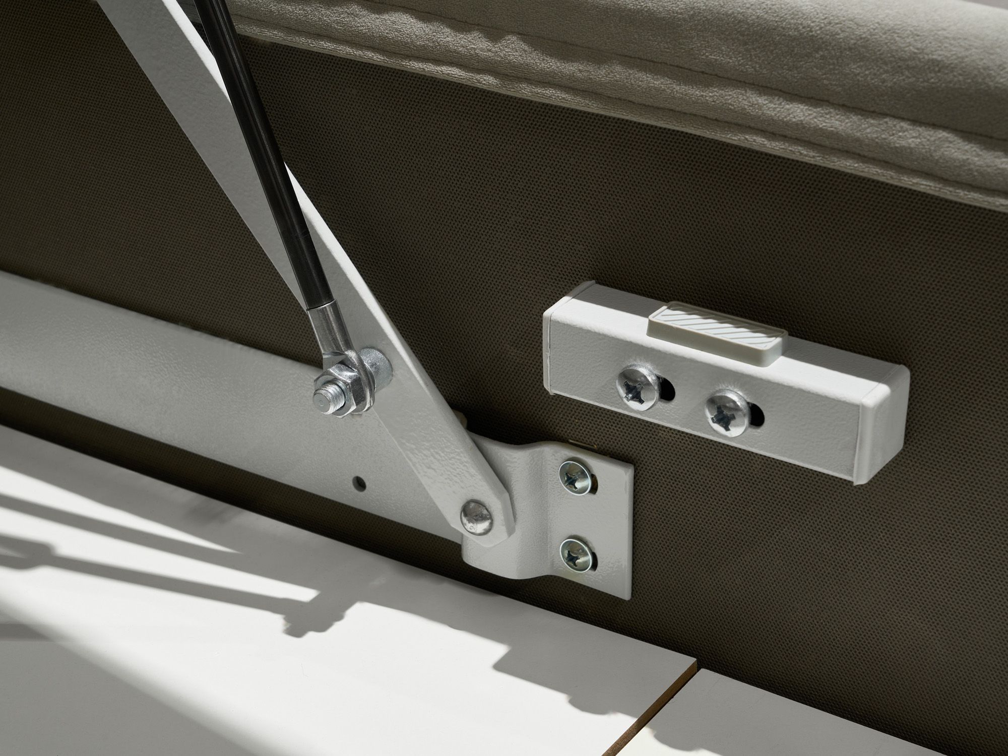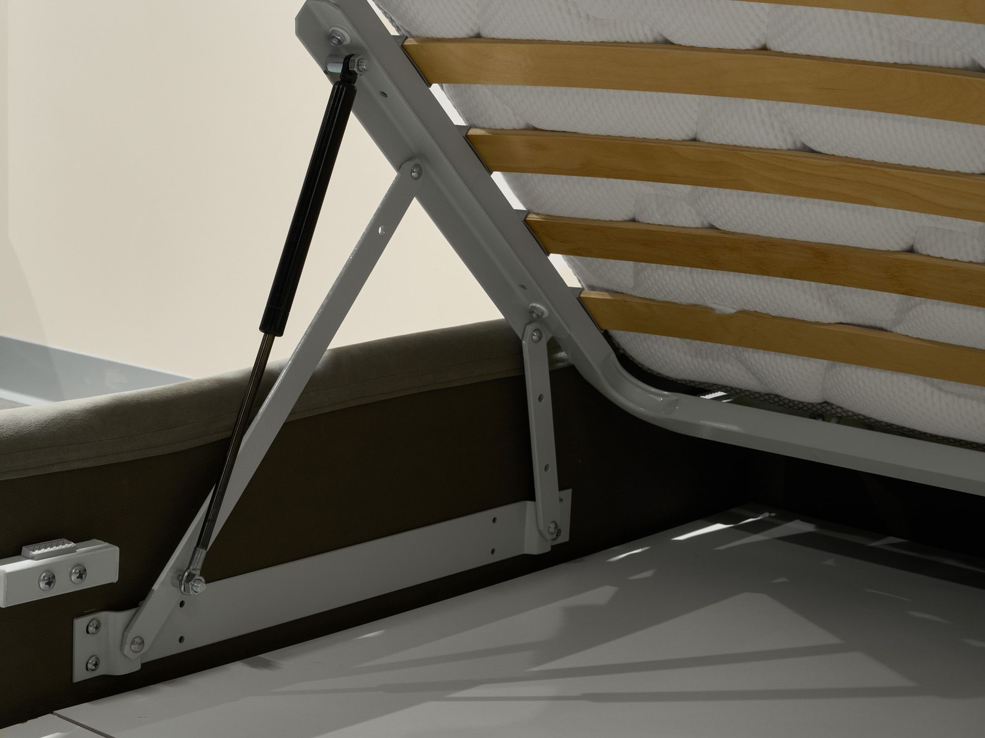 Механизм на газовых лифтах надёжен, безопасен и рассчитан на 25 лет службы. Он плавно и бесшумно поднимает матрас, позволяя открывать ящик без особых усилий.