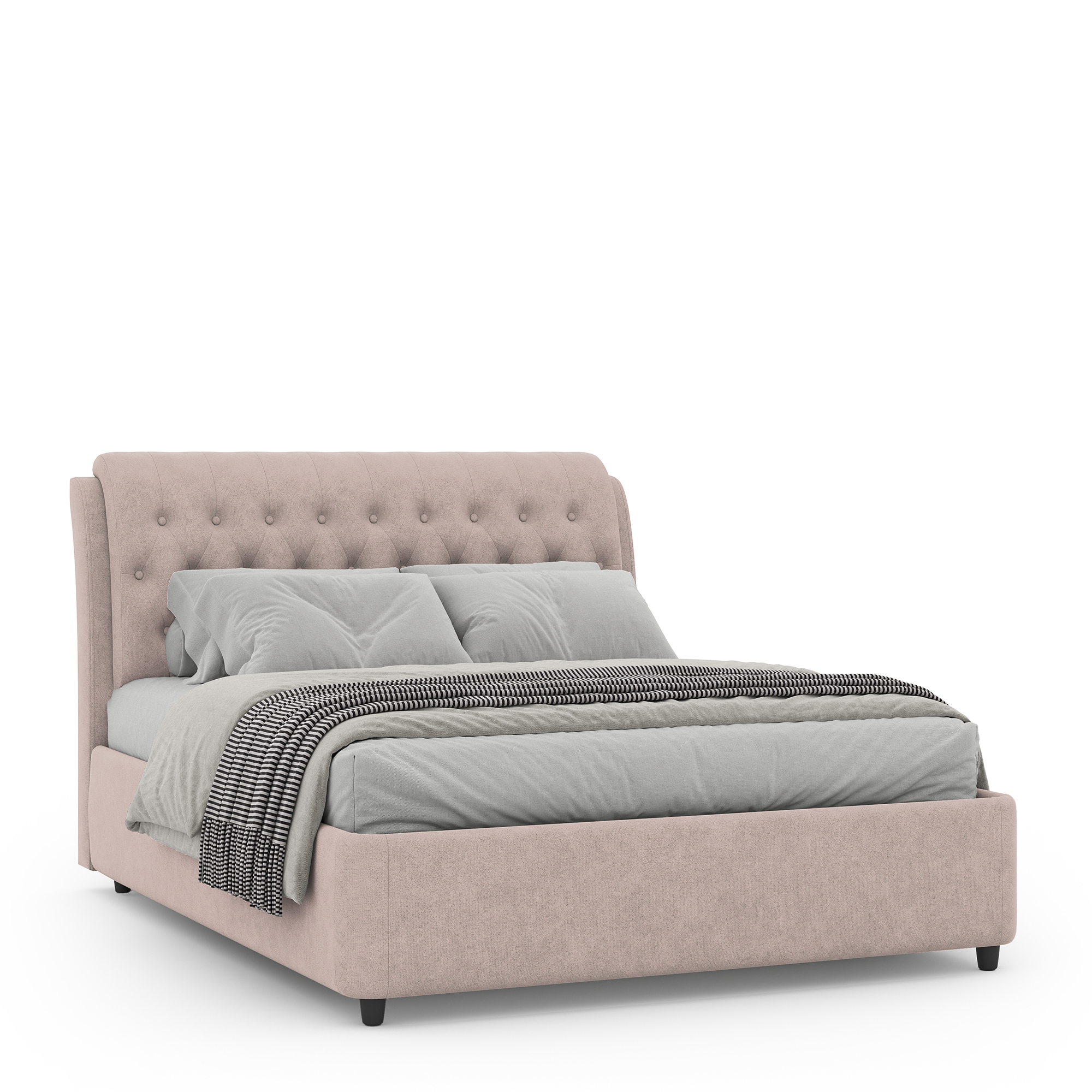 Кровать FLORINA в мягком текстильном корпусе оснащена высоким изголовьем. Съемный чехол можно подвергать профессиональной химчистке. Цельносварное металлическое основание обладает высокой прочностью, не скрипит и не ломается в процессе эксплуатации. В основании модели располагается вместительный бельевой ящик с подъемным механизмом.
