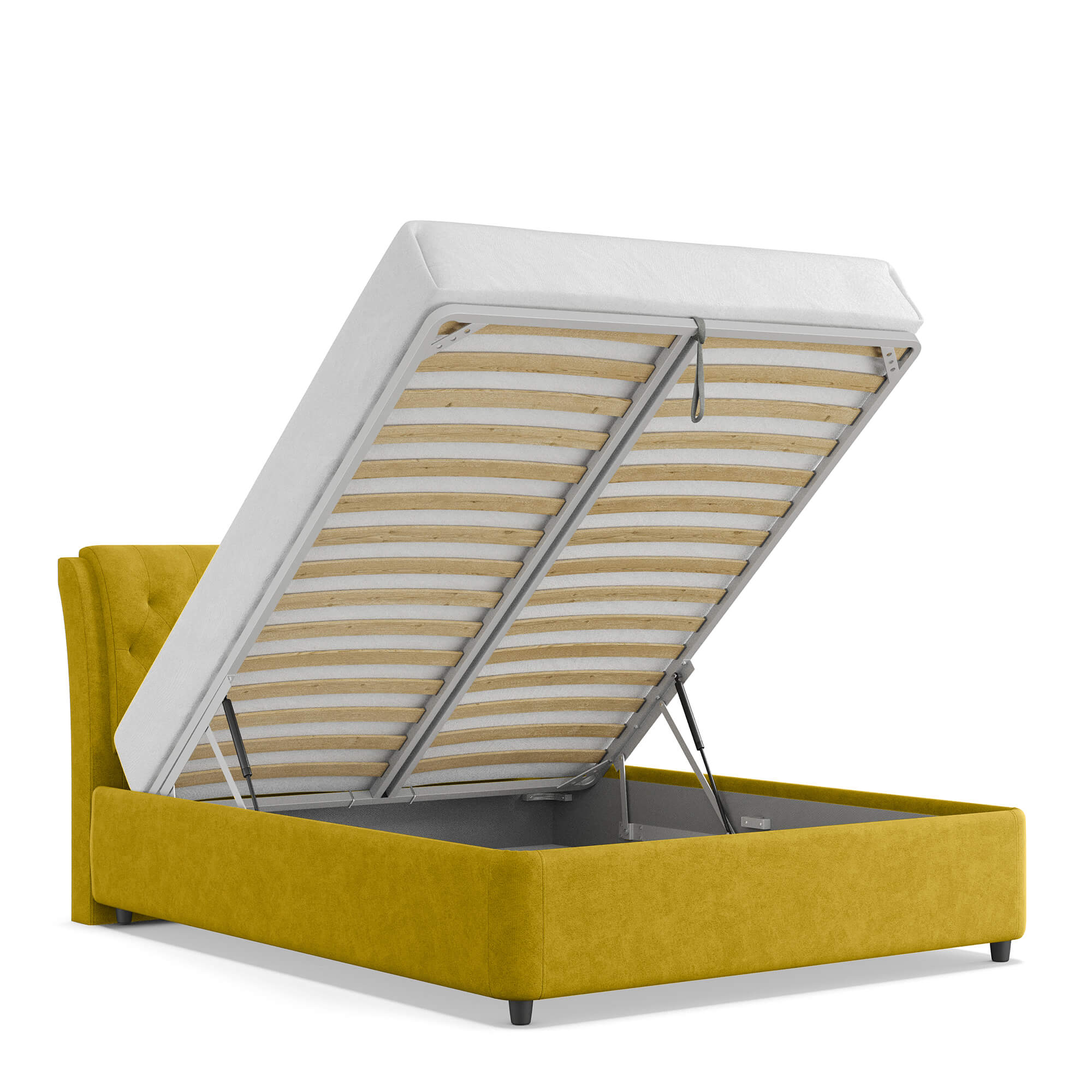 Механизм на газовых лифтах надёжен, безопасен и рассчитан на 25 лет службы. Он плавно и бесшумно поднимает матрас, позволяя открывать ящик без особых усилий.