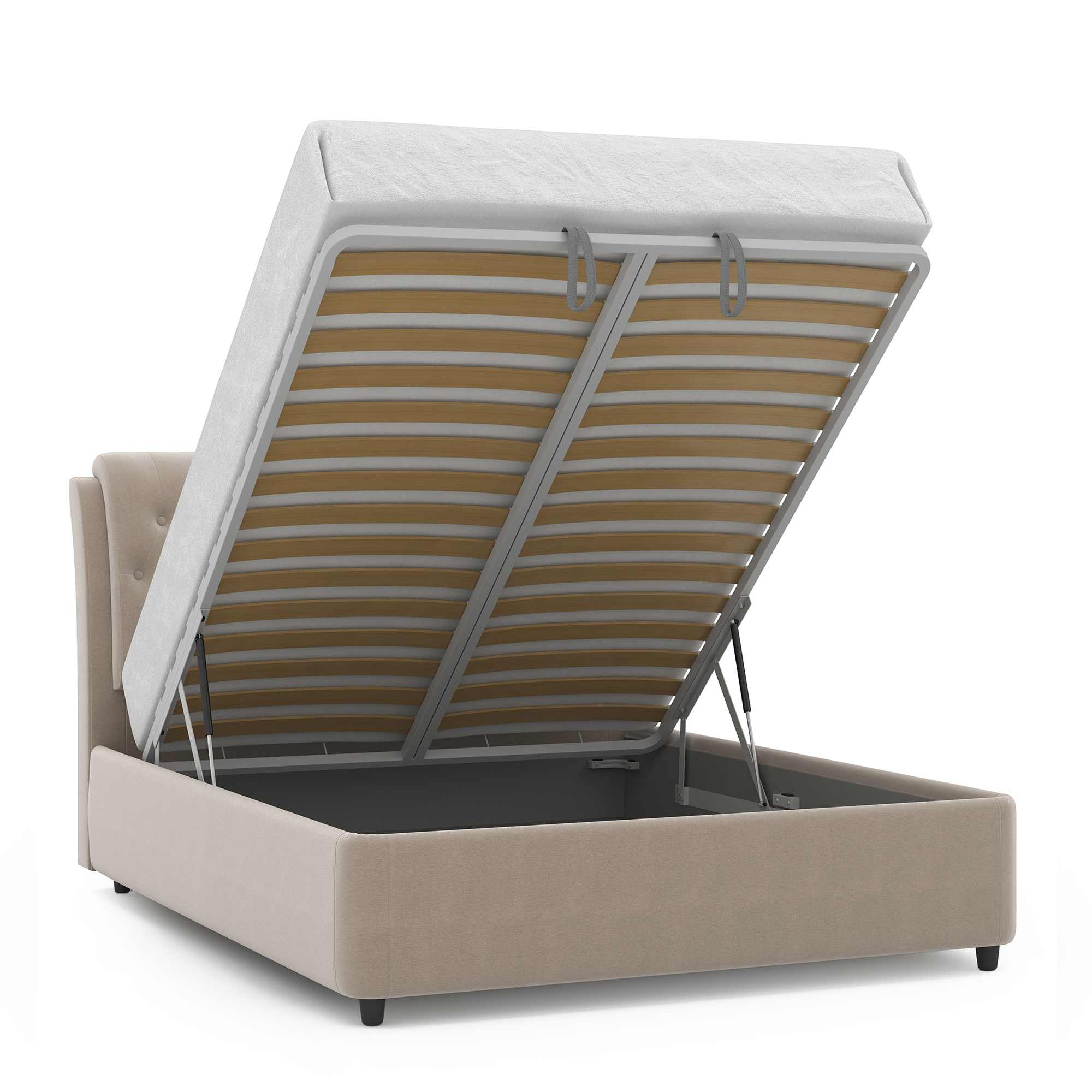Механизм на газовых лифтах надёжен, безопасен и рассчитан на 25 лет службы. Он плавно и бесшумно поднимает матрас, позволяя открывать ящик без особых усилий.