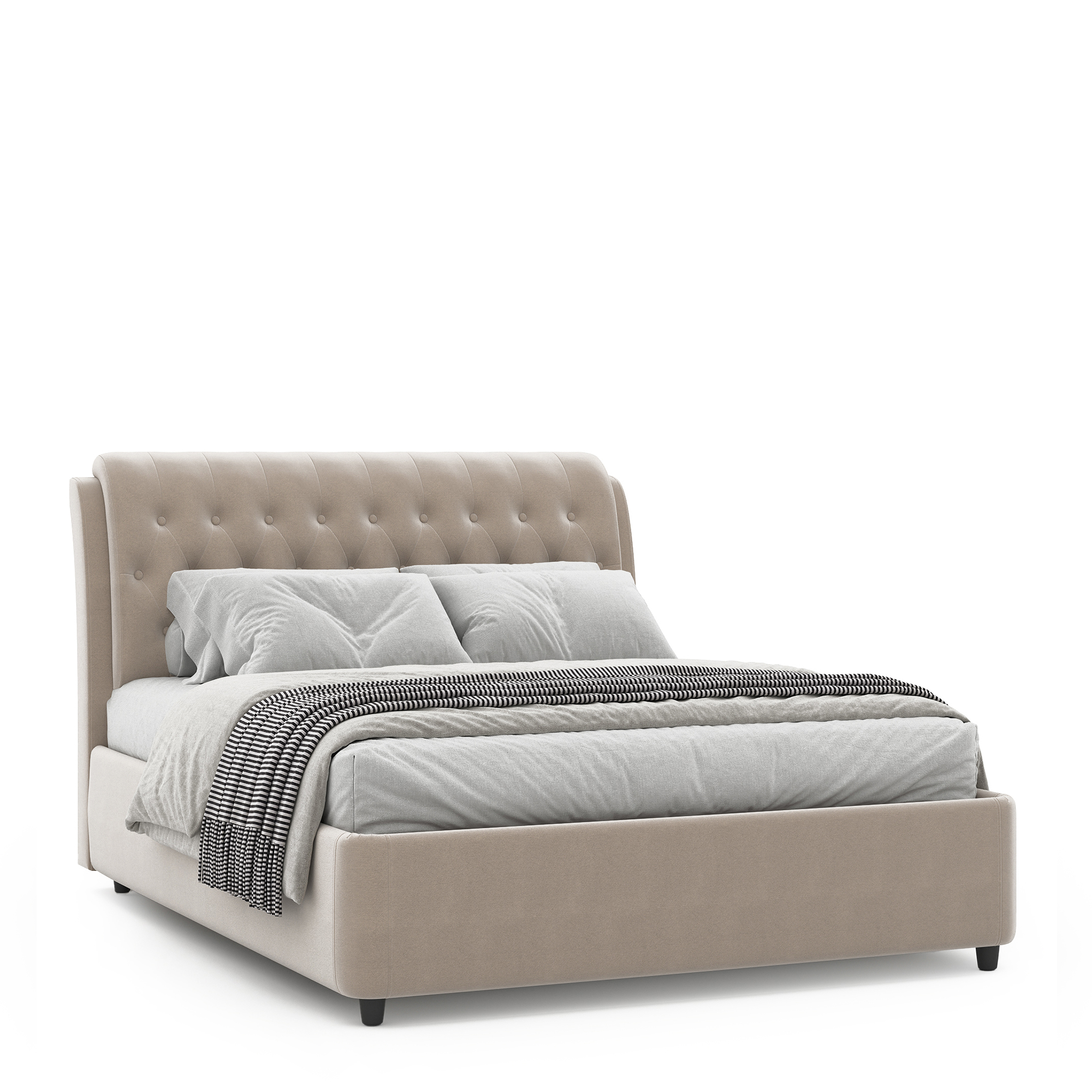 Кровать FLORINA в мягком текстильном корпусе оснащена высоким изголовьем. Съемный чехол можно подвергать профессиональной химчистке. Цельносварное металлическое основание обладает высокой прочностью, не скрипит и не ломается в процессе эксплуатации. В основании модели располагается вместительный бельевой ящик с подъемным механизмом.