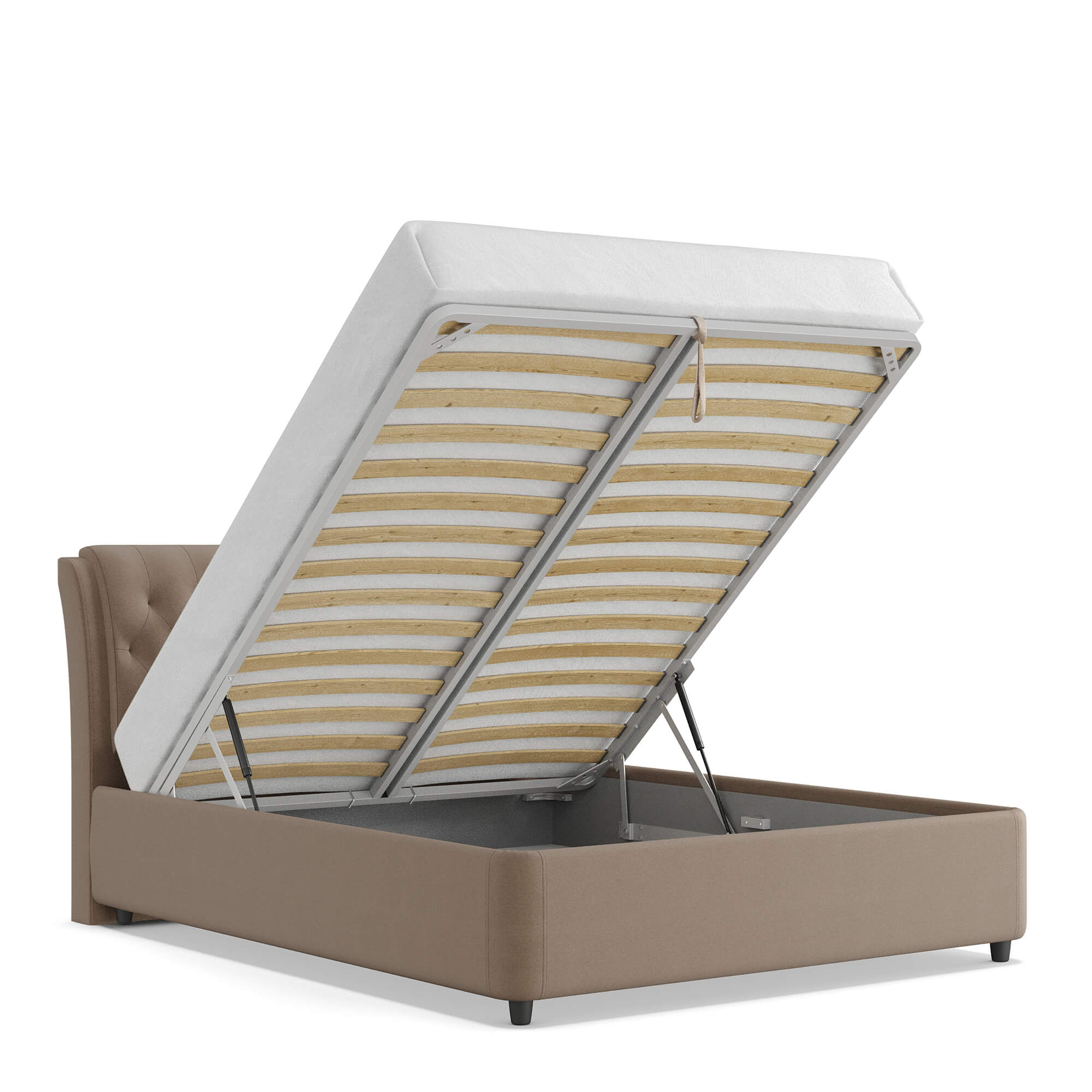 Механизм на газовых лифтах надёжен, безопасен и рассчитан на 25 лет службы. Он плавно и бесшумно поднимает матрас, позволяя открывать ящик без особых усилий.