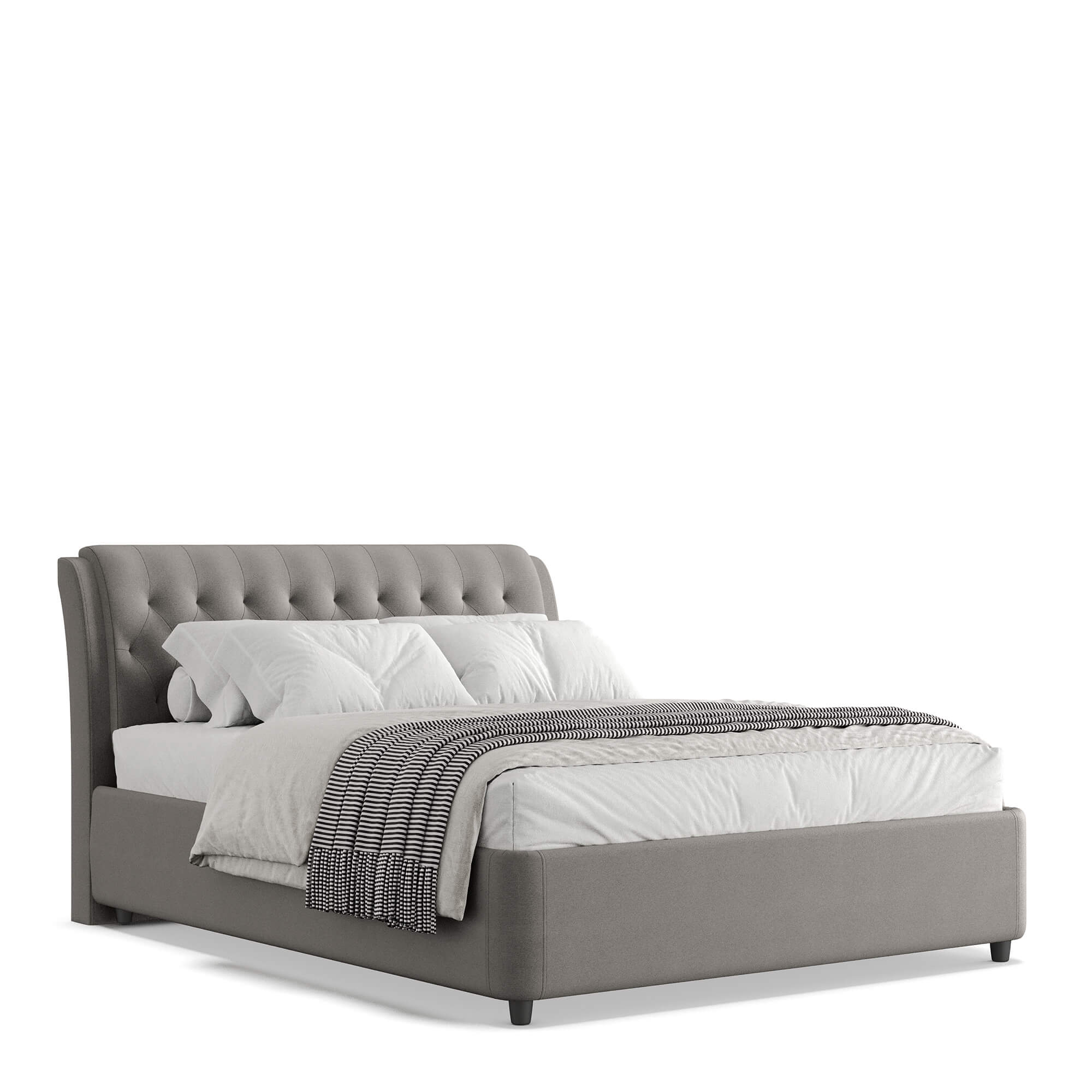Кровать ФЛОРИНА / FLORINA в мягком текстильном корпусе оснащена высоким изголовьем. Съемный чехол можно подвергать профессиональной химчистке. Цельносварное металлическое основание обладает высокой прочностью, не скрипит и не ломается в процессе эксплуатации. В основании модели располагается вместительный бельевой ящик с подъемным механизмом.