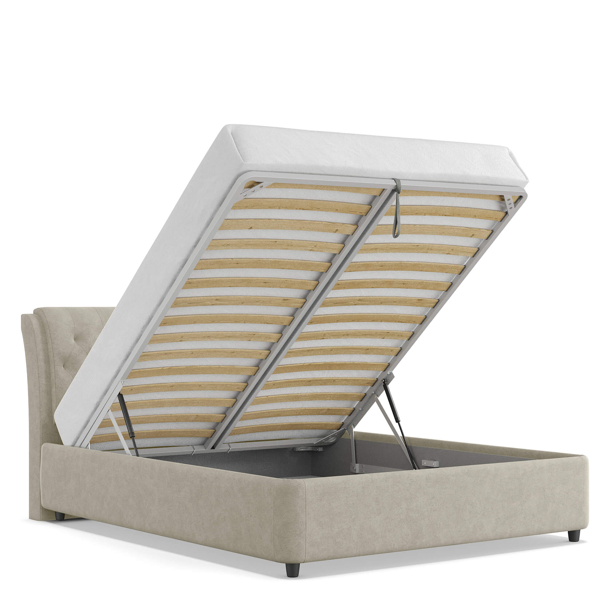 Вместительный короб внутри кровати подойдет для хранения подушек, белья и других вещей. В бельевом ящике нет перегородок – это позволяет использовать его, в том числе, для хранения длинных и крупногабаритных вещей.