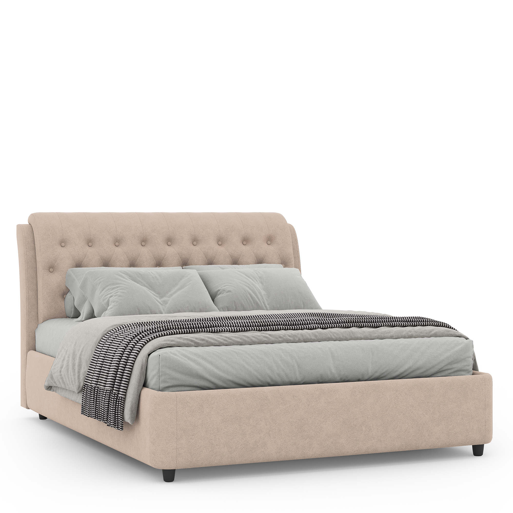 Утолщенный наполнитель царг делает углы безопасными при эксплуатации кровати. Закругленные царги кровати идеально повторяют контуры матраса.