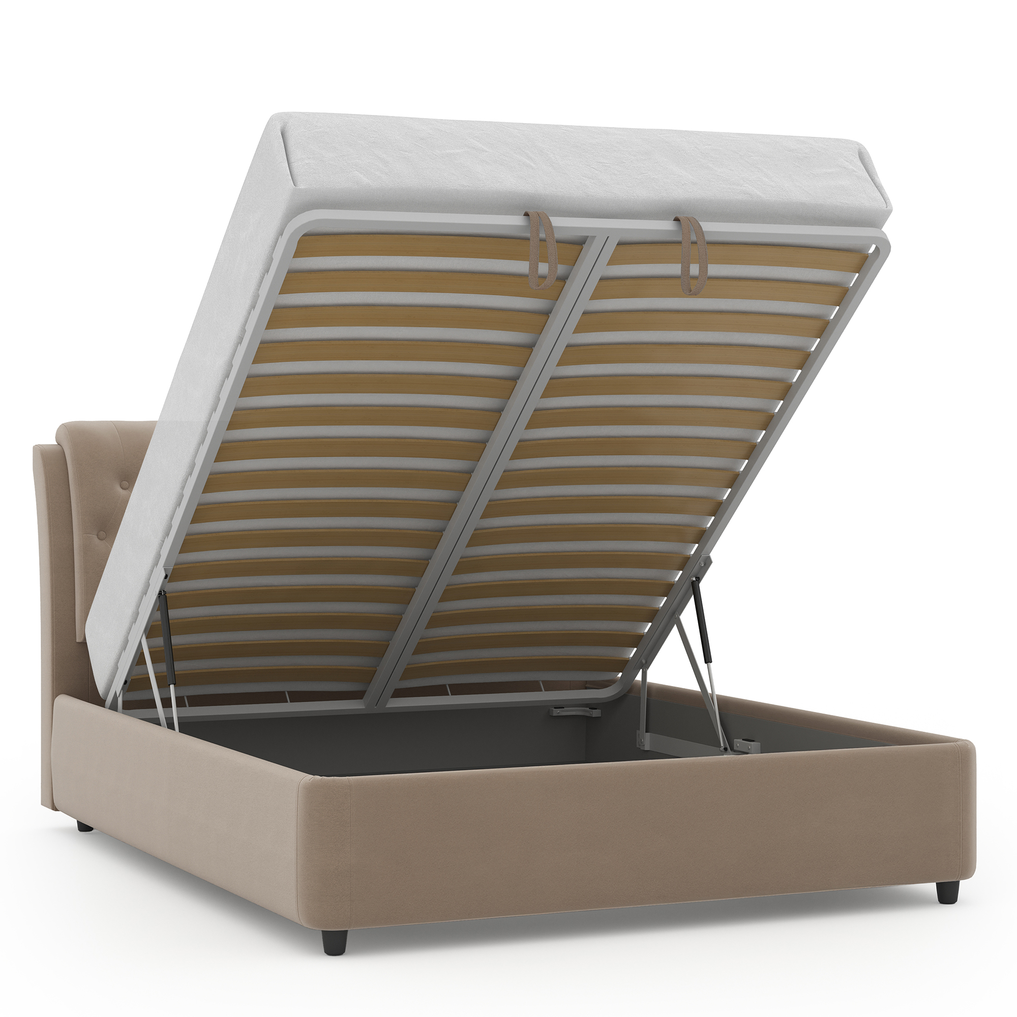 Механизм на газовых лифтах надёжен, безопасен и рассчитан на 25 лет службы. Он плавно и бесшумно поднимает матрас, позволяя открывать ящик без особых усилий.