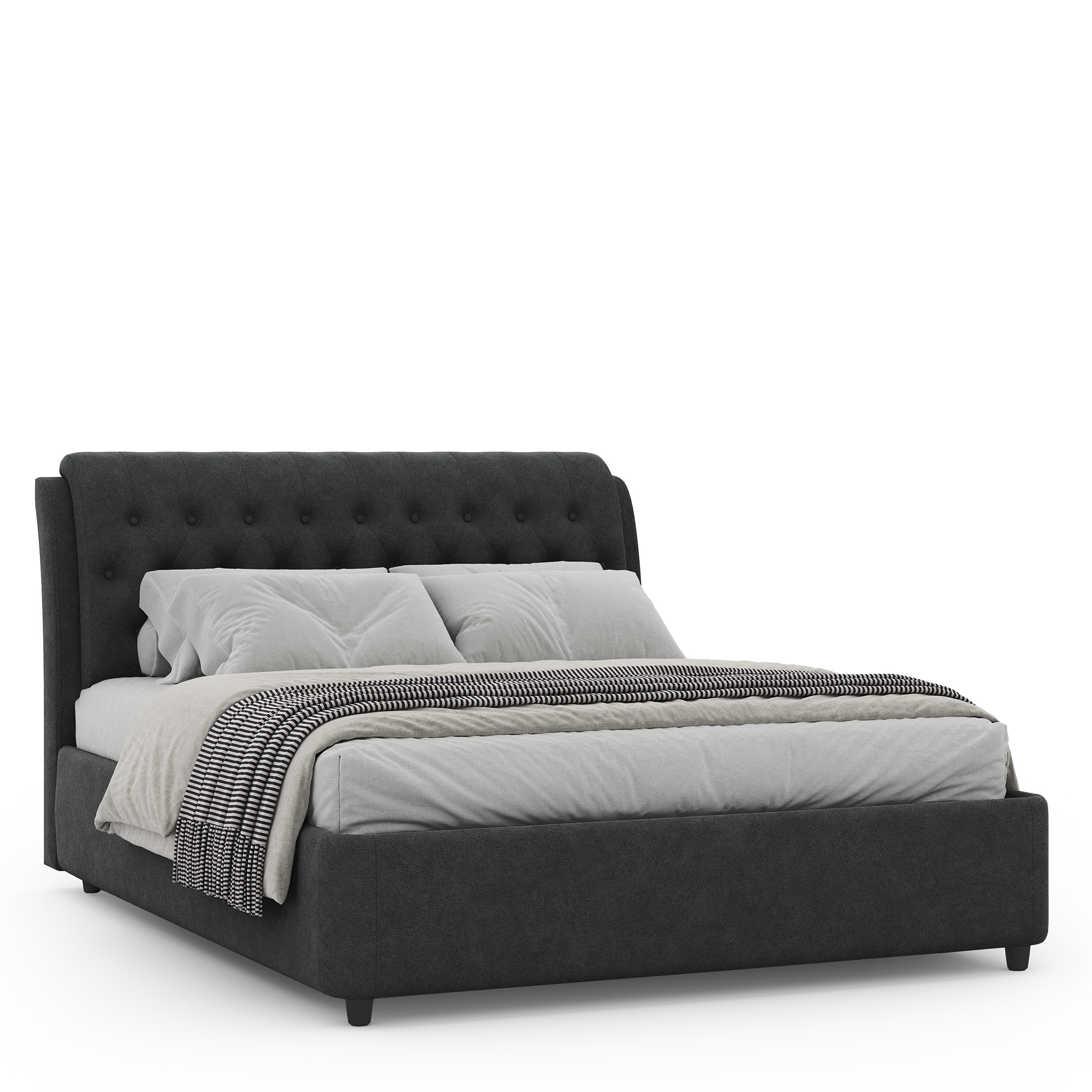 Кровать FLORINA в мягком текстильном корпусе оснащена высоким изголовьем. Съемный чехол можно подвергать профессиональной химчистке. Цельносварное металлическое основание обладает высокой прочностью, не скрипит и не ломается в процессе эксплуатации. В основании модели располагается вместительный бельевой ящик с подъемным механизмом.